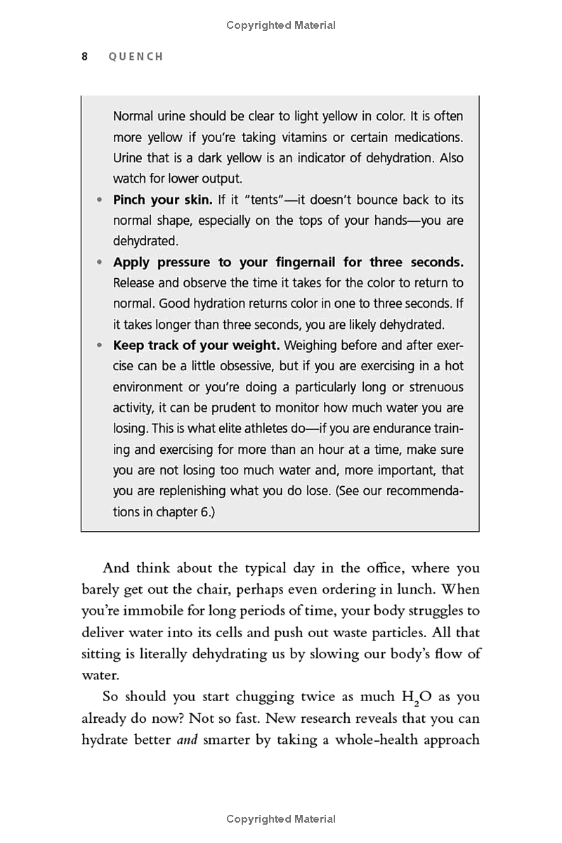 Based on breakthrough new science in the field of hydration, Quench debunks many popular myths about "getting enough water" and offers a revolutionary five-day jump start plan that shows how better hydration can reduce or eliminate ailments like chronic headaches, weight gain, gut pain, and even autoimmune conditions.