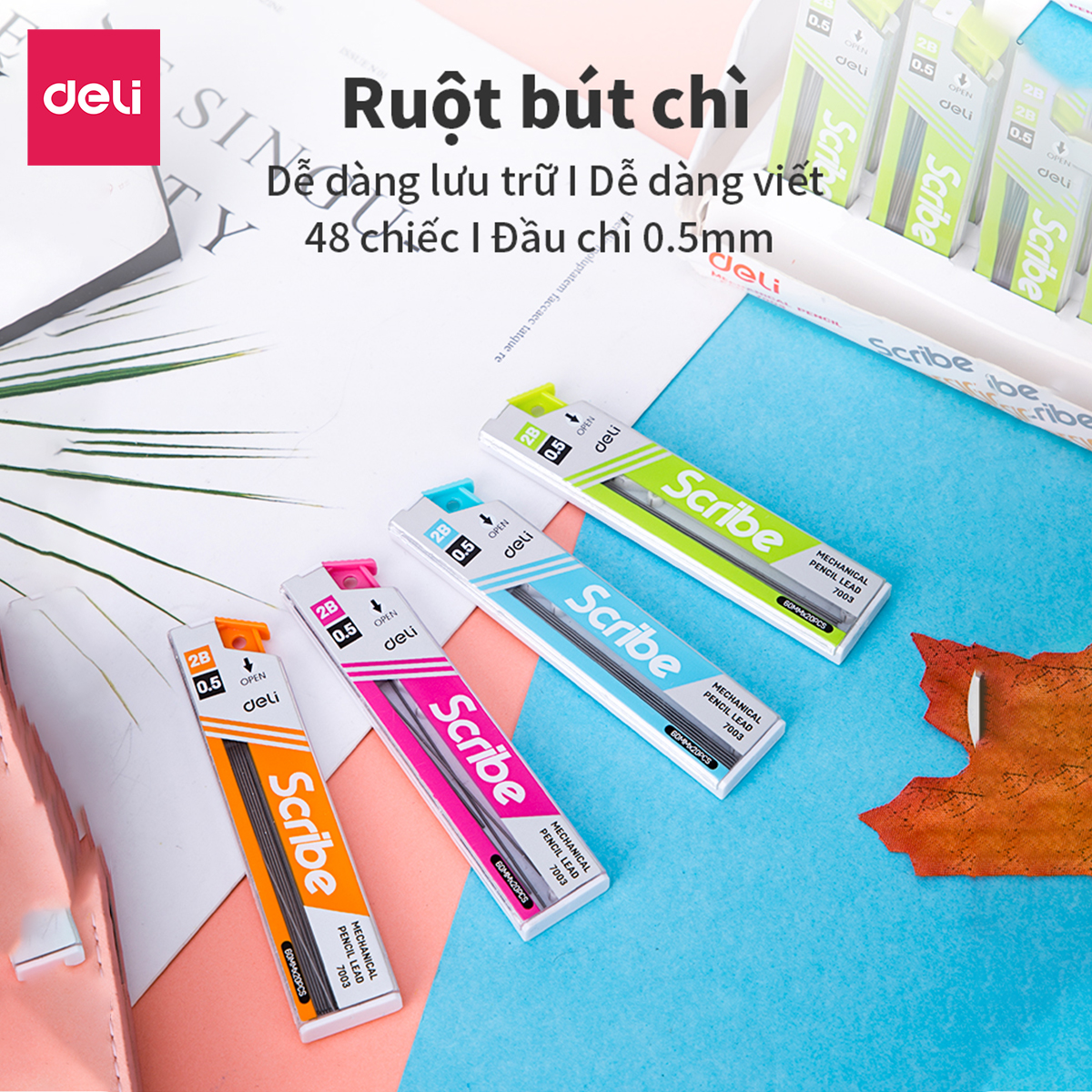 ✨Ruột Bút Chì 0.5Mm Deli, Xanh Dương/Cam/Xanh Lục/Hồng - 2 Ống - E7003