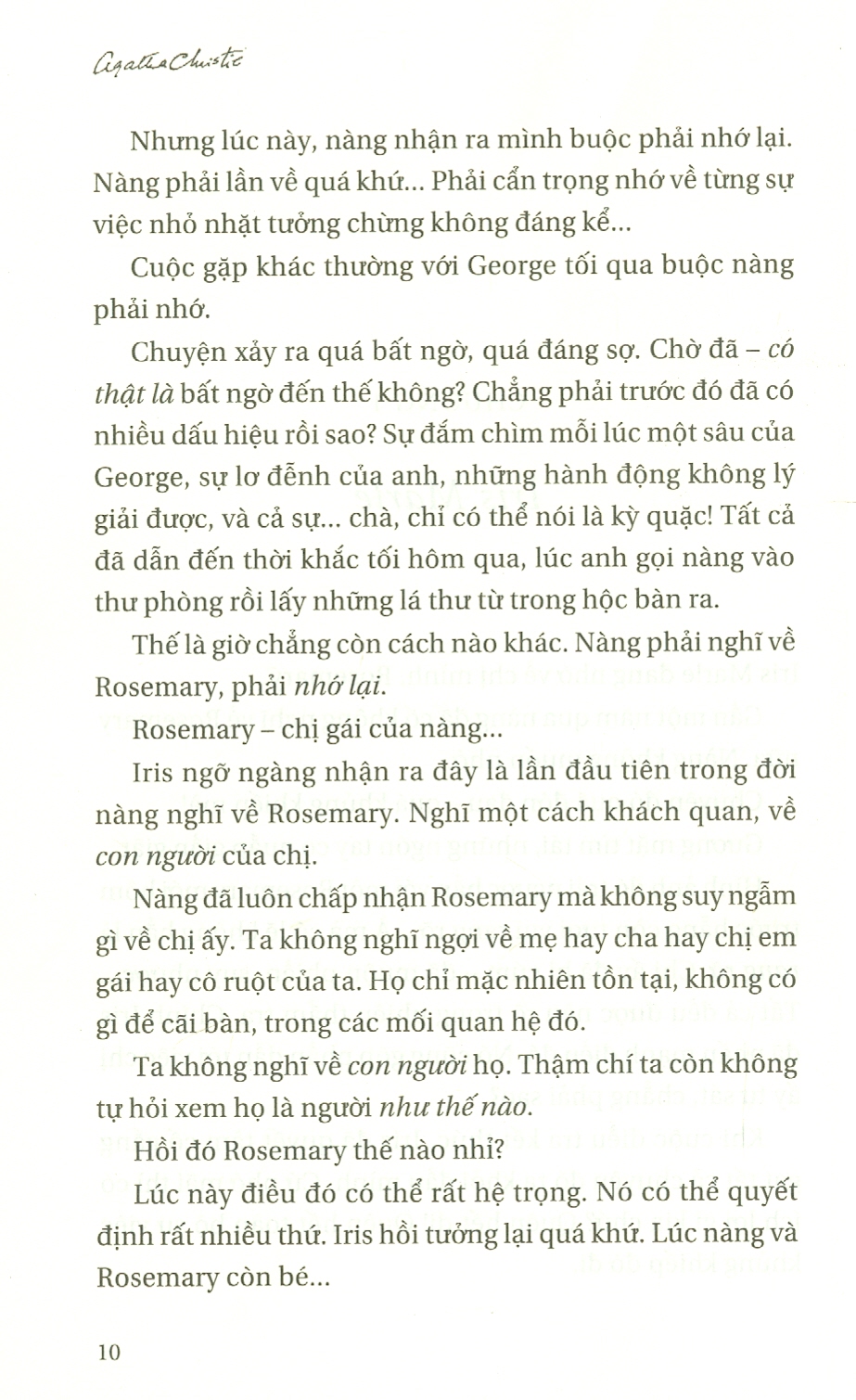 Sáu người ngồi vào một bàn tiệc được bày biện cho bảy người tham dự. Trước chỗ ngồi để trống là một nhành hương thảo – Rosemary – “loài hoa tỏ niềm tưởng nhớ”. Thật là một gợi nhắc lạ lùng, vì chẳng ai trong số họ quên được cái đêm kinh hoàng của một năm về trước, khi Rosemary Barton gục chết trên chính cái bàn này, gương mặt xinh đẹp méo mó vì đau đớn. Như cái tên, Rosemary không thể bị lãng quên. Cô luôn khơi gợi cảm xúc mãnh liệt ở mọi người, và có khi là cảm xúc đủ mạnh để họ xuống tay hạ sát cô Đêm nay, bi kịch có tái diễn? Giữa một cái bẫy, mấy tay bồi bàn, và những gói độc dược giấu trong túi xách, làm sao Đại tá Race phá giải vụ án mạng đáng lẽ không thể nào xảy ra được nhưng đã xảy ra? Một lần nữa, Agatha Christie lại chứng tỏ sức hấp dẫn đến từ sự am hiểu tâm lý vô song và một bí ẩn vừa lắt léo vừa giản đơn đến tài tình. “Màn kết sẽ khiến chín trên mười người đọc phải sửng sốt.” New York Times.