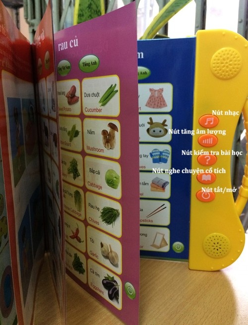 – Sách còn được tích hợp nhiều câu truyện cổ tích hay mà các bé rất thích được nghe kể. chỉ cần nhấn nút trên bảng điều khiển và chọc câu truyện cần nghe.