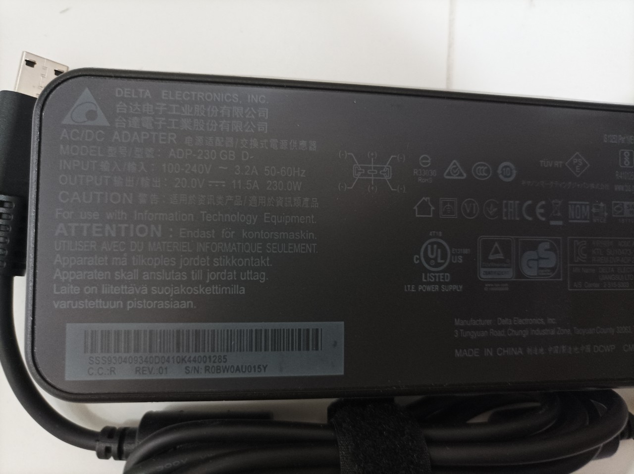 - Tên sạc: Sạc dành cho Laptop Gaming Lenovo Legion 7 7i 15IMHg05 81YU 15IMH05 81YT - Công suất: 230Walt - Chuẩn chân cắm: USB kim trong - Điện áp vào(input): 100V - 240V -