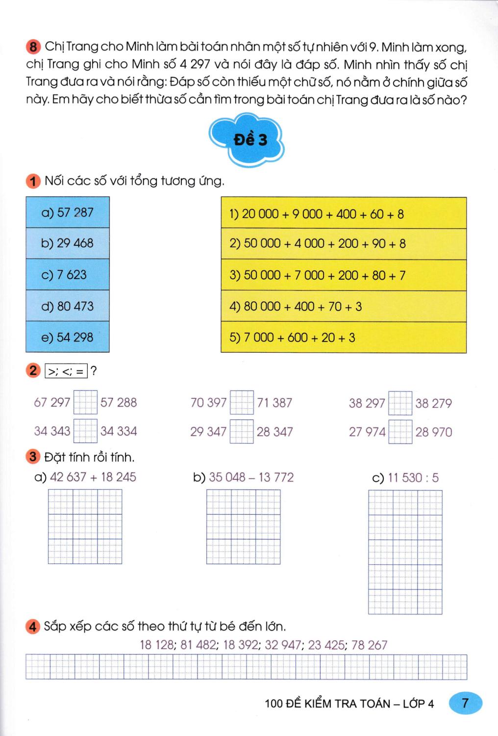 Combo Bộ Đề Kiểm Tra Môn Toán + Tiếng Việt Lớp 4 (Dùng Kèm SGK Kết Nối Tri Thức Với Cuộc Sống) (Bộ 4 Cuốn) 1. Bộ Đề Kiểm Tra Môn Toán Lớp 4 Tập