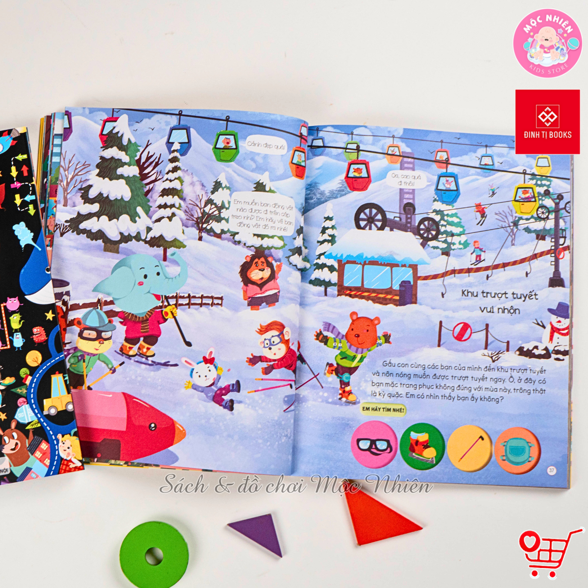 Sách được in màu 100%, tranh vẽ bắt mắt và các trò chơi đánh đố thú vị chắc chắn sẽ khiến mọi bé đều thích mê.