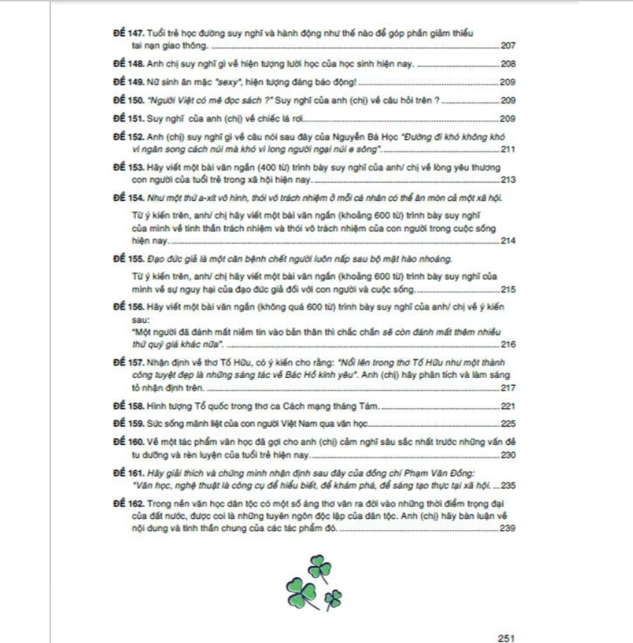 Bên cạnh sách giáo khoa và những giờ giảng của thầy cô trên lớp cùng với kiến thức mà các em thu được từ trong cuộc sống, chúng tôi trân trọng gửi đến các em cuốn “162 đề và bài văn hay 12”, nhằm giúp các em tham khảo để làm bài tốt hơn trong các kì thi. Theo cấu trúc đề thi hiện nay, nên chúng tôi bố cục cuốn sách gồm 2 phần nghị luận văn học và nghị luận xã hội để thuận lợi cho các em học thi.