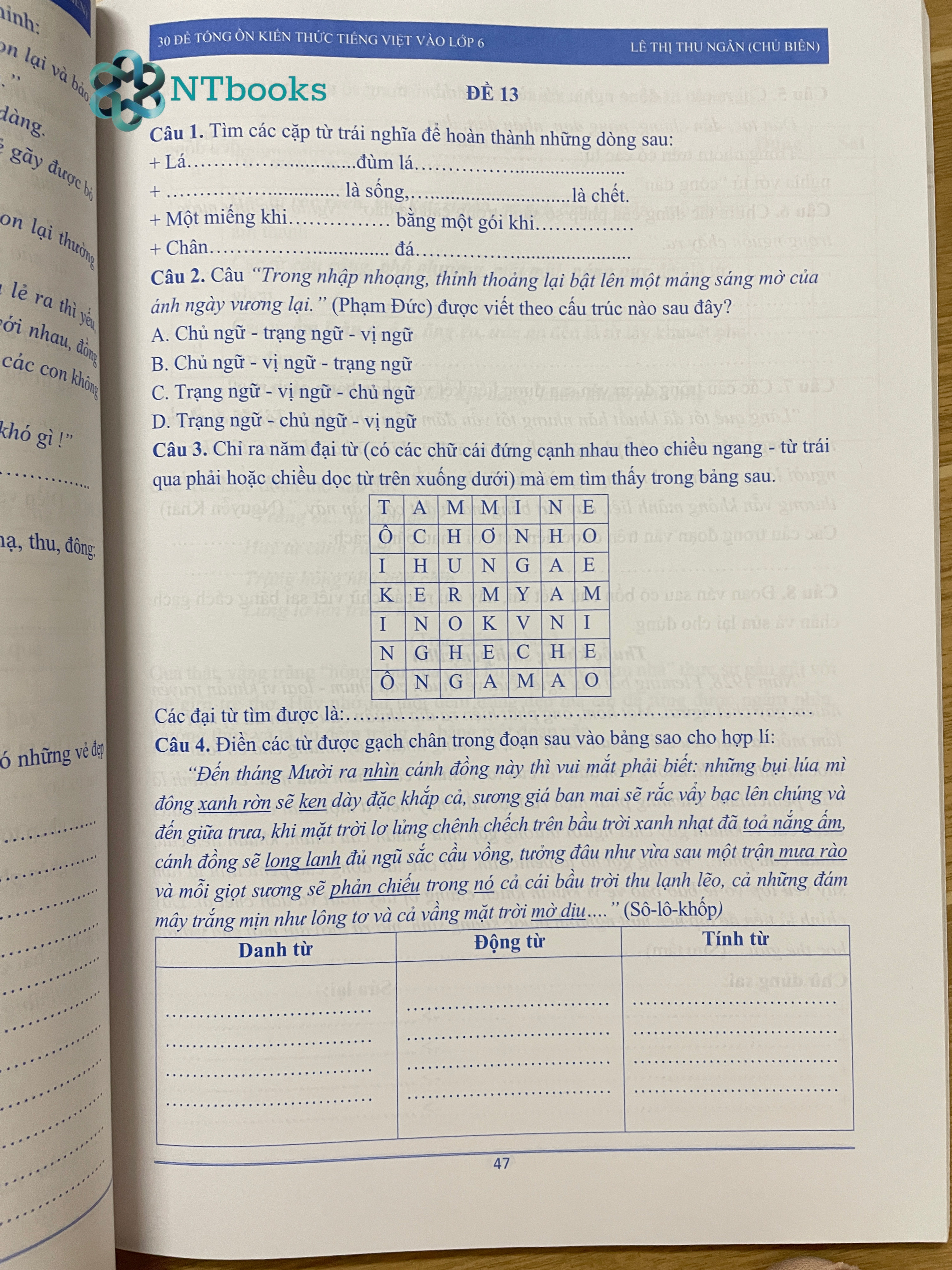 ✨Sách 30 Đề tổng ôn kiến thức Tiếng Việt vào Lớp 6