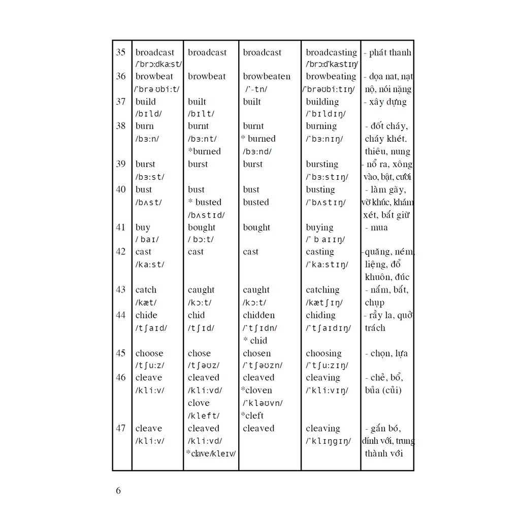 Bảng động từ bất quy tắc đầy đủ 360 động từ bất quy tắc tiếng Anh thường gặp | 360 Irregular Verbs