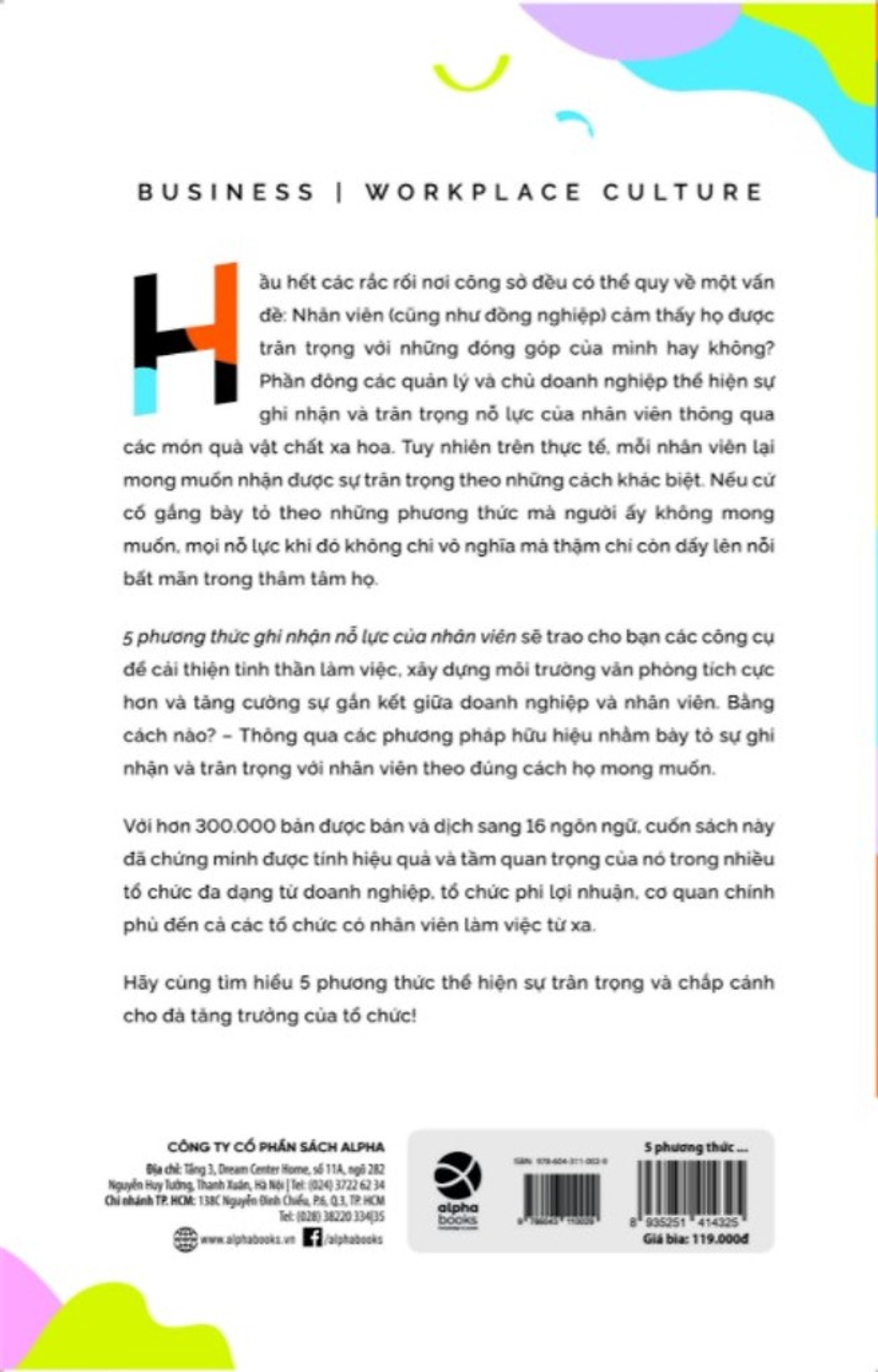 Cuốn sách này sẽ cung cấp cho bạn các công cụ để cải thiện tinh thần nhân viên, xây dựng một môi trường làm việc tích cực hơn và tăng cường sự gắn kết trong nhân viên. Bằng cách nào? – Thông qua các phương pháp hiệu quả thể hiện sự ghi nhận và trân trọng đối với nhân viên, đồng nghiệp và lãnh đạo.