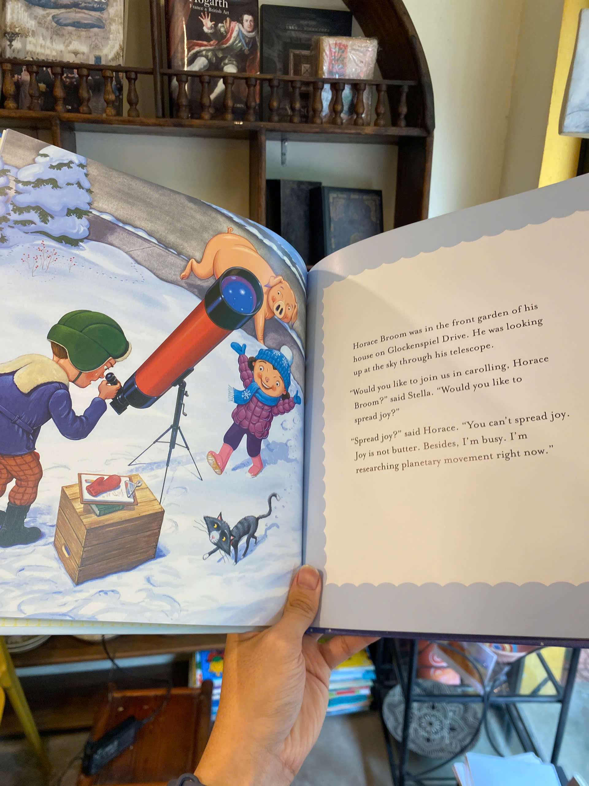 For fans of Mercy Watson, old and new, comes a joyful crescendo of favourite characters in a picture-book celebration of the quiet miracles Christmastime brings. When Stella gets the sudden idea to go caroling, she has a little trouble getting someone to join her. Her brother, Frank, is not good at spontaneity. The Watsons are very involved in a precarious fruitcake attempt (but happy to send their pig, Mercy, out for the occasion). Eugenia Lincoln declines, a bit rudely, to accompany on her accordion, and Horace Broom is too busy studying planetary movement. Will Stella need to sing by herself – with enthusiastic contributions from the pig, the cat, and the horse she picks up on the way? Or does the evening hold a miracle Stella hadn’t expected? With tender affection for Mercy Watson and all her Deckawoo Drive friends, Kate DiCamillo and Chris Van Dusen offer a picture-book homage to the season that is perfectly suited for family sharing – perhaps with some cups of hot chocolate and a stack of well-buttered toast.