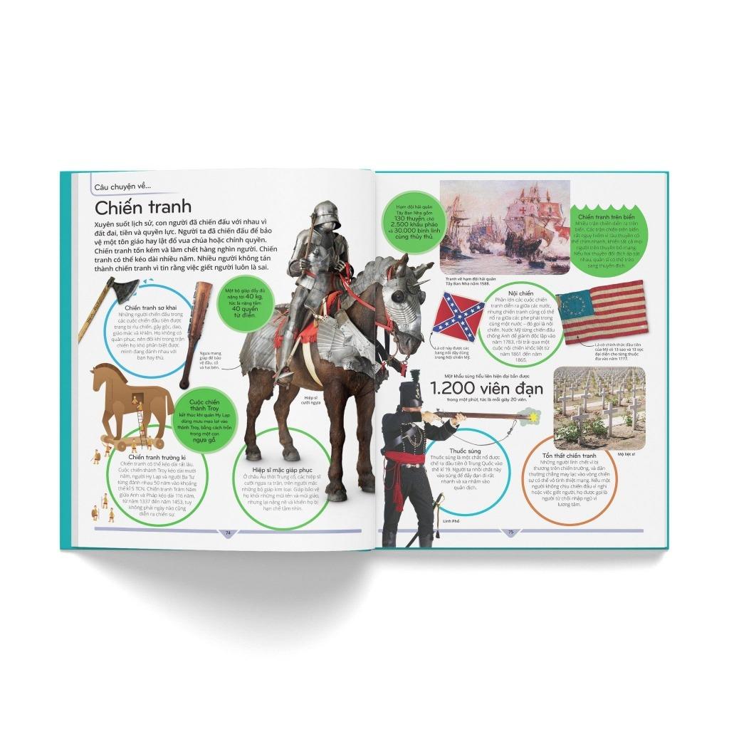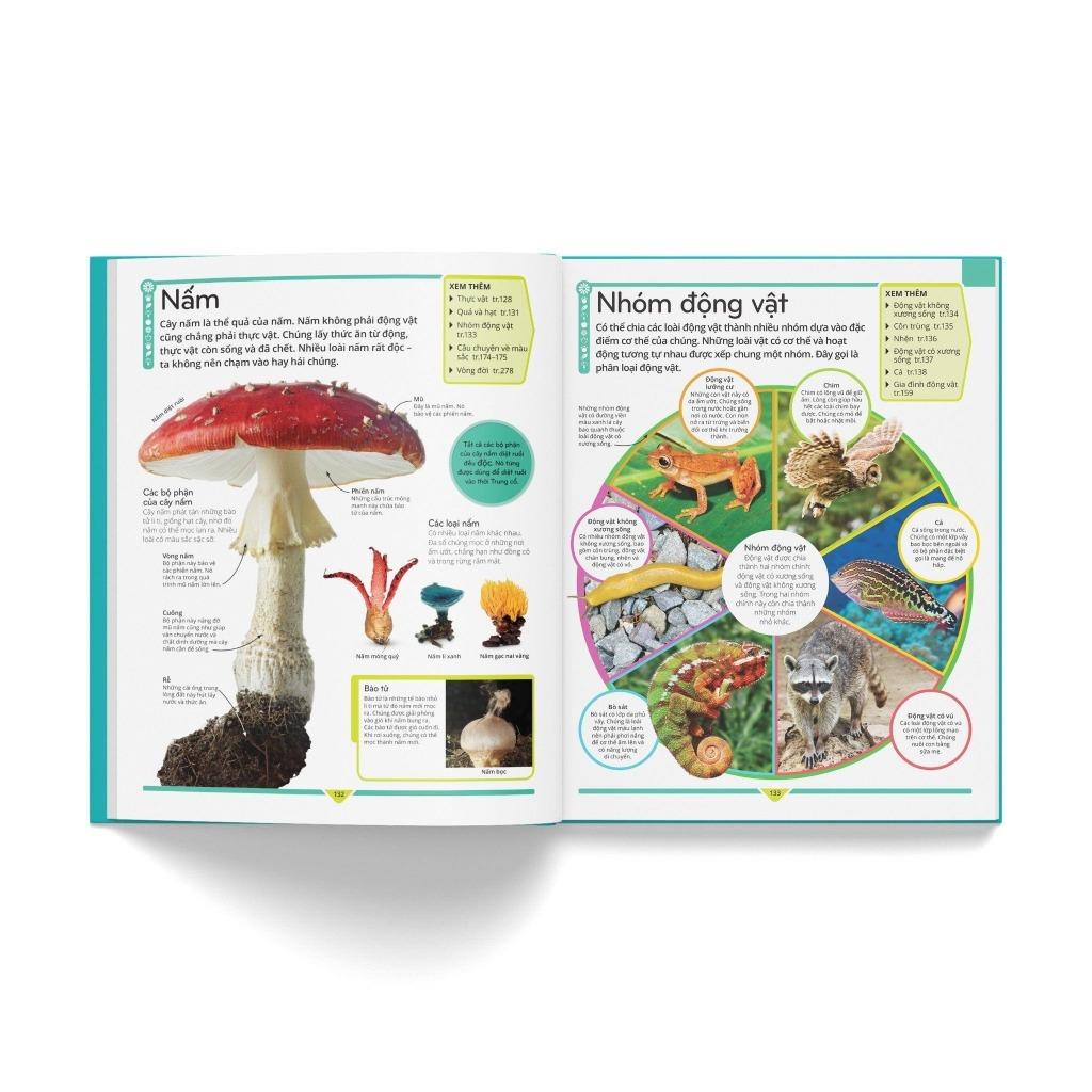 Luôn nằm trong top sách bán chạy và được cập nhật kiến thức mới nhất, Bách khoa thư trẻ em – Cuốn sách lí giải vạn vật có lối trình bày mạch lạc, khoa học, là cuốn sách thiết yếu cho mọi tủ sách thiếu nhi. Mở đầu, phần “Hướng dẫn sử dụng” sẽ khái quát cuốn sách cũng như giúp các bạn đọc nhỏ tuổi thuận tiện trong việc đọc và tra cứu. Tiếp đó, nội dung được chia thành chín lĩnh vực gồm nhiều chủ đề, mỗi chủ đề gói gọn trong một trang đơn. Chẳng hạn, lĩnh vực Công nghệ nói về cách hoạt động của máy bay, ; lĩnh vực Vũ trụ giải thích hố đen là gì, ngôi sao hình thành và chết đi ra sao… Xen kẽ là các trang đôi diễn giải một chủ đề theo tư duy liên kết giữa các lĩnh vực, như “Câu chuyện về mật mã” thuật lại lịch sử của mật mã (ra đời, phát triển…) và cách sử dụng mật mã Mỗi trang cũng có ô “Xem thêm” liệt kê các chủ đề liên quan với chủ đề đang đề cập. Cuối sách là phụ lục gồm danh sách các nhà khoa học, cây sự sống, bản đồ thế giới… Đặc biệt, phiên bản tiếng Việt này còn có danh sách các quân chủ và triều đại Việt Nam. Sau cùng là phần “Từ vựng” giải nghĩa từ khó và “Chỉ mục” để tra cứu các chủ đề.