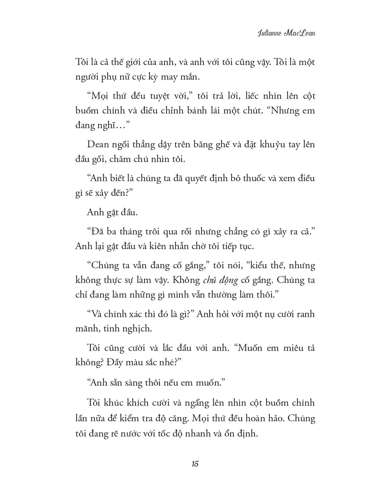 Julianne MacLean là tác giả có sách bán chạy nhất của USA Today với hơn 30 tiểu thuyết, trong đó có bộ sách nổi tiếng Color of Heaven. Độc giả mô tả những cuốn sách của cô ấy là “ngoạn mục”, “có hồn” và “nâng đỡ tinh thần”. MacLean đã bốn lần lọt vào vòng chung kết của giải thưởng RITA dành cho Nhà văn Lãng mạn Hoa Kỳ và đã giành được nhiều giải thưởng, bao gồm Booksellers’ Best Award và Reviewers’ Choice Award của Romantic Times. Tiểu thuyết của cô đã bán được hàng triệu bản trên toàn thế giới và đã được dịch ra hơn 10 loại ngôn ngữ khác nhau.