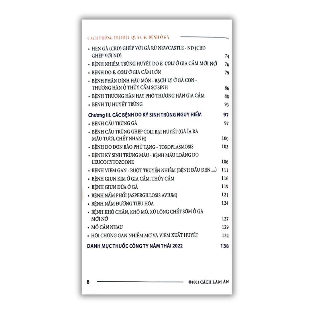 Mua tại TiktokCách phòng trị hiệu quả các bệnh ở Gà Gà là một loài gia cầm phổ biến và được nhiều người yêu thích nuôi. Tuy nhiên, gà cũng rất dễ mắc phải các bệnh truyền nhiễm do vi khuẩn, virus, ký sinh trùng hay nấm gây ra. Các bệnh thường gặp ở gà không chỉ ảnh hưởng đến sức khỏe và năng suất của đàn gà, mà còn có thể lây lan sang người và gây nguy hiểm cho sức khỏe cộng đồng. Vậy làm thế nào để nhận biết, phòng ngừa và các bệnh thường gặp ở gà? Hãy cùng tìm hiểu trong cuốn sách này nhé! Sách gồm 3 chương: