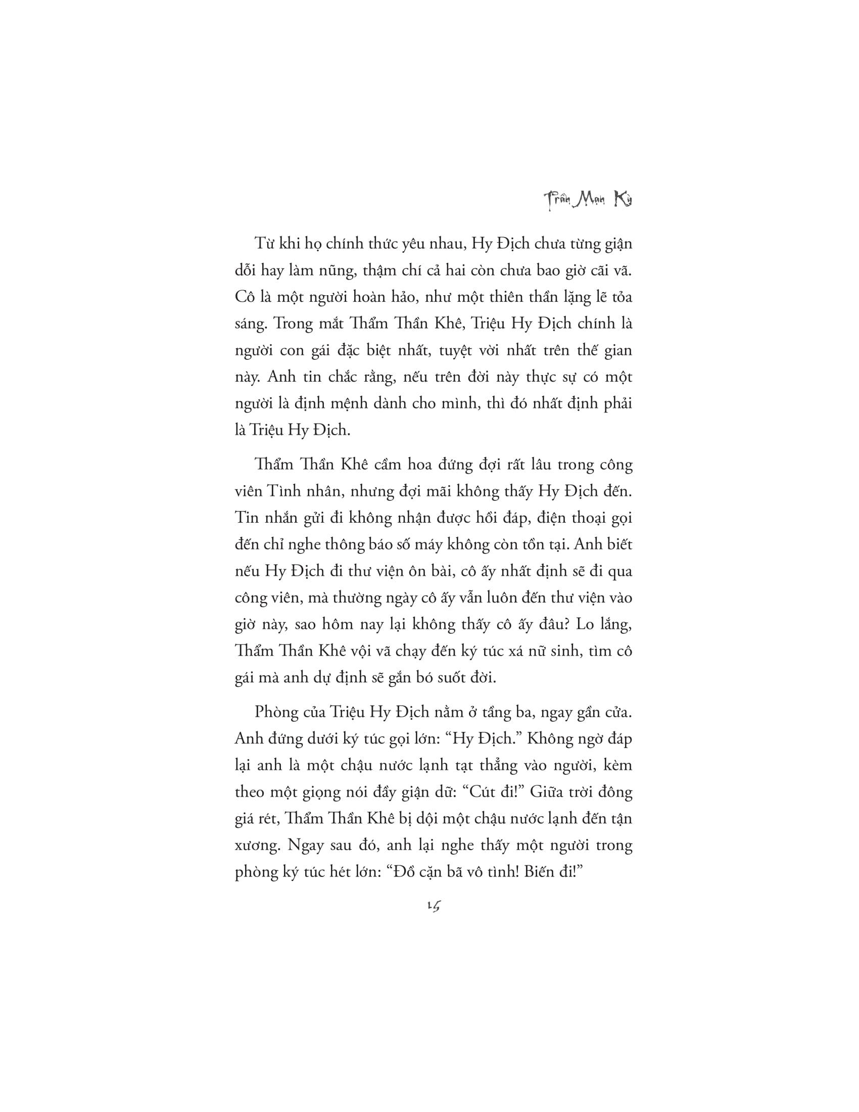 Từng sử dụng bút danh là Một Chiếc Bánh Bao Thập Cẩm, Trần Mạn Kỳ đã viết lách nhiều năm với phong cách độc đáo và riêng biệt. Hiện cô đang sống tại Thượng Hải, làm việc trong lĩnh vực lồng tiếng. Niềm đam mê viết lách của cô có thể được gói gọn qua vài câu thơ sau: