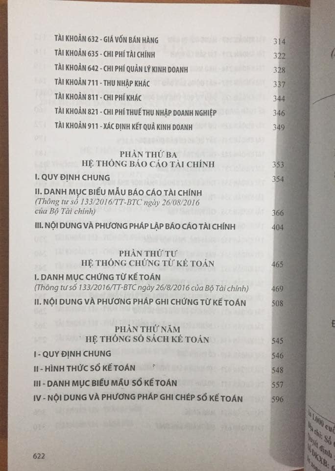 Ban hành theo thông tư số 133/2016/TT - BTC ngày 26/08/2016 của Bộ Tài chính gồm 5 phần:
