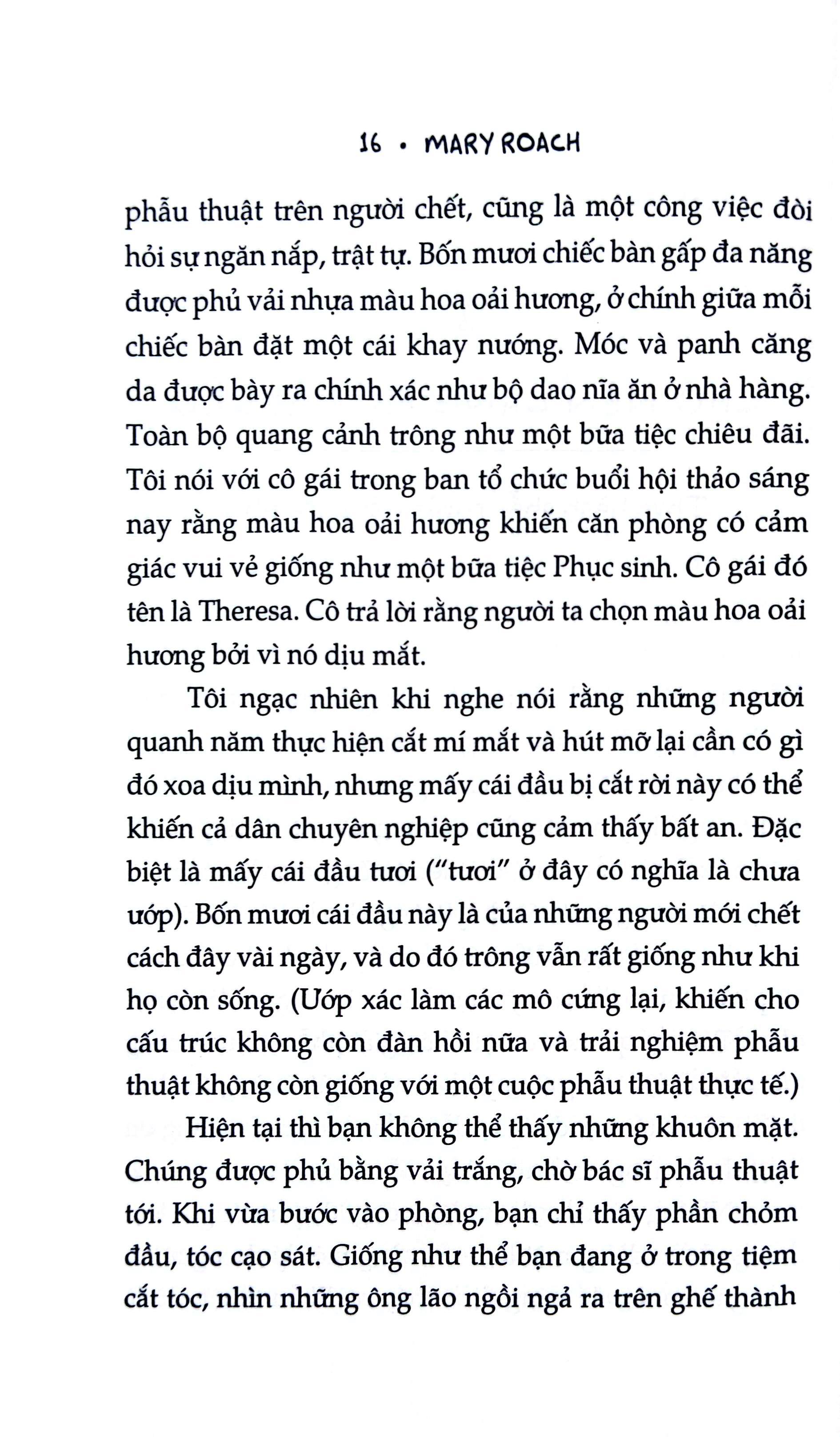 Bằng giọng văn dí dỏm đặc trưng mà không hề thiếu vắng thái độ tôn trọng, Mary Roach đã khai thác một đề tài vốn còn nhiều định kiến và kiêng kỵ, từ đó mở ra không chỉ những bí ẩn hậu trường mà còn xem xét những vấn đề đạo đức xoay quanh công việc nghiên cứu xác chết. Hơn thế nữa, cuốn sách còn là bản tụng ca về những con người đã cống hiến cho khoa học, những siêu anh hùng thầm lặng của chúng ta.