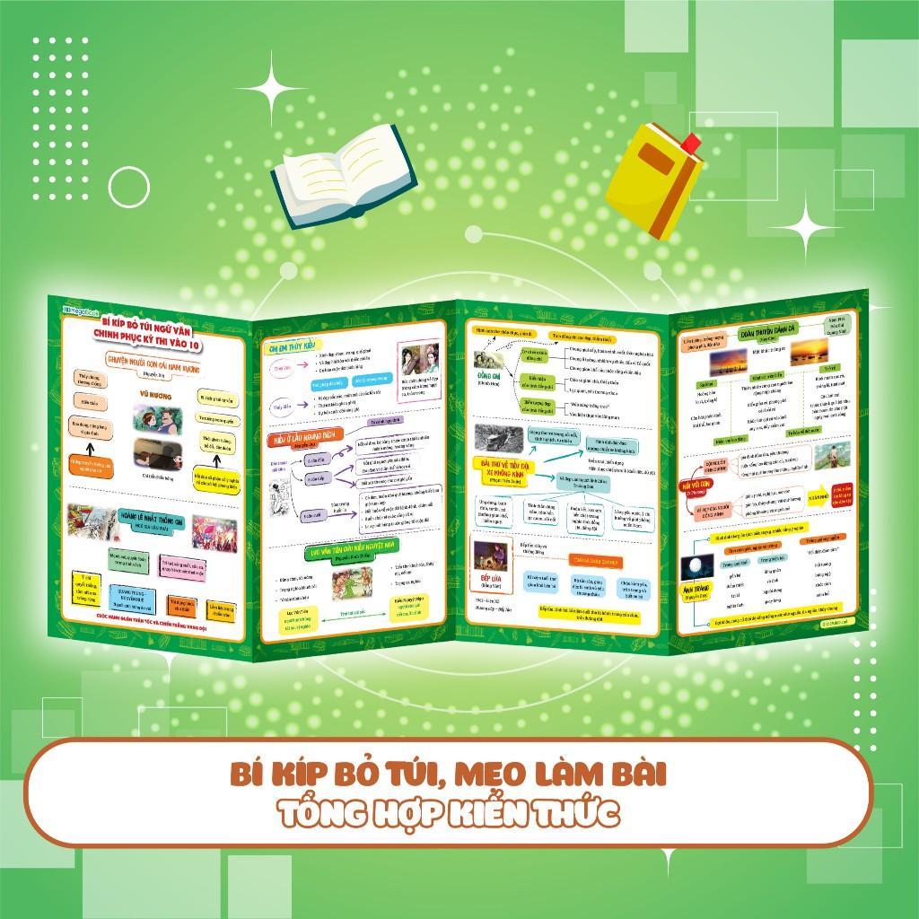 Toàn bộ chương trình ôn thi vào 10 môn Ngữ văn được cô đọng chỉ trong 1 cuốn sách, các em được ôn lại kiến thức cũ, ghi nhớ kiến thức mới, và từ đó vận dụng nhuần nhuyễn kiến thức vào các đề thi cụ thể.