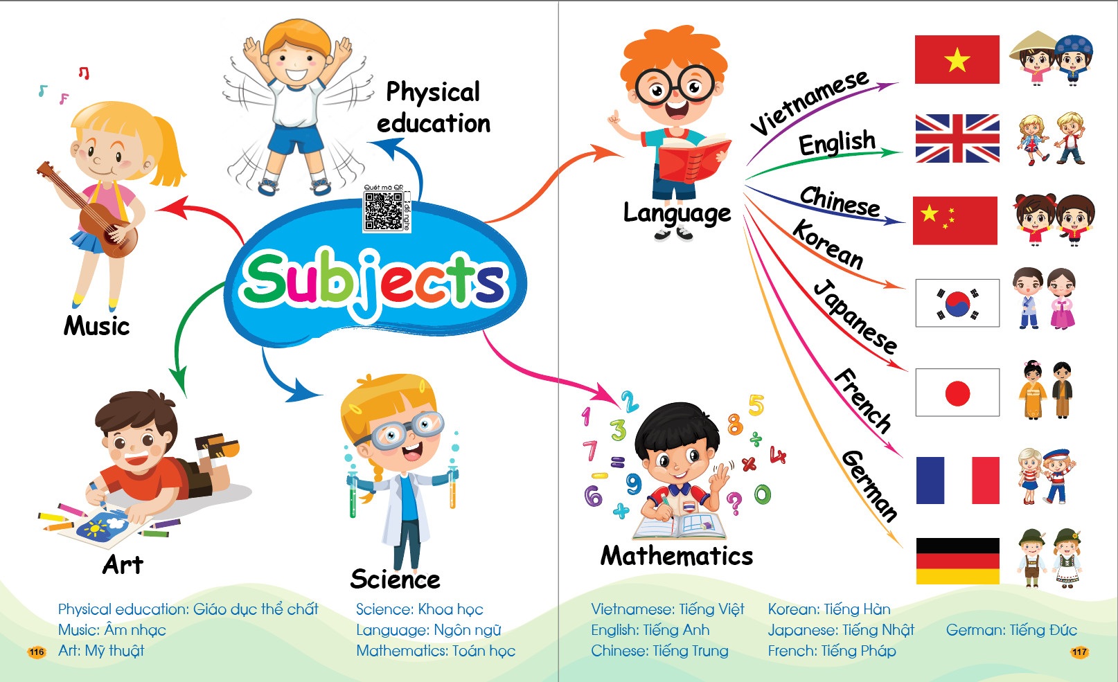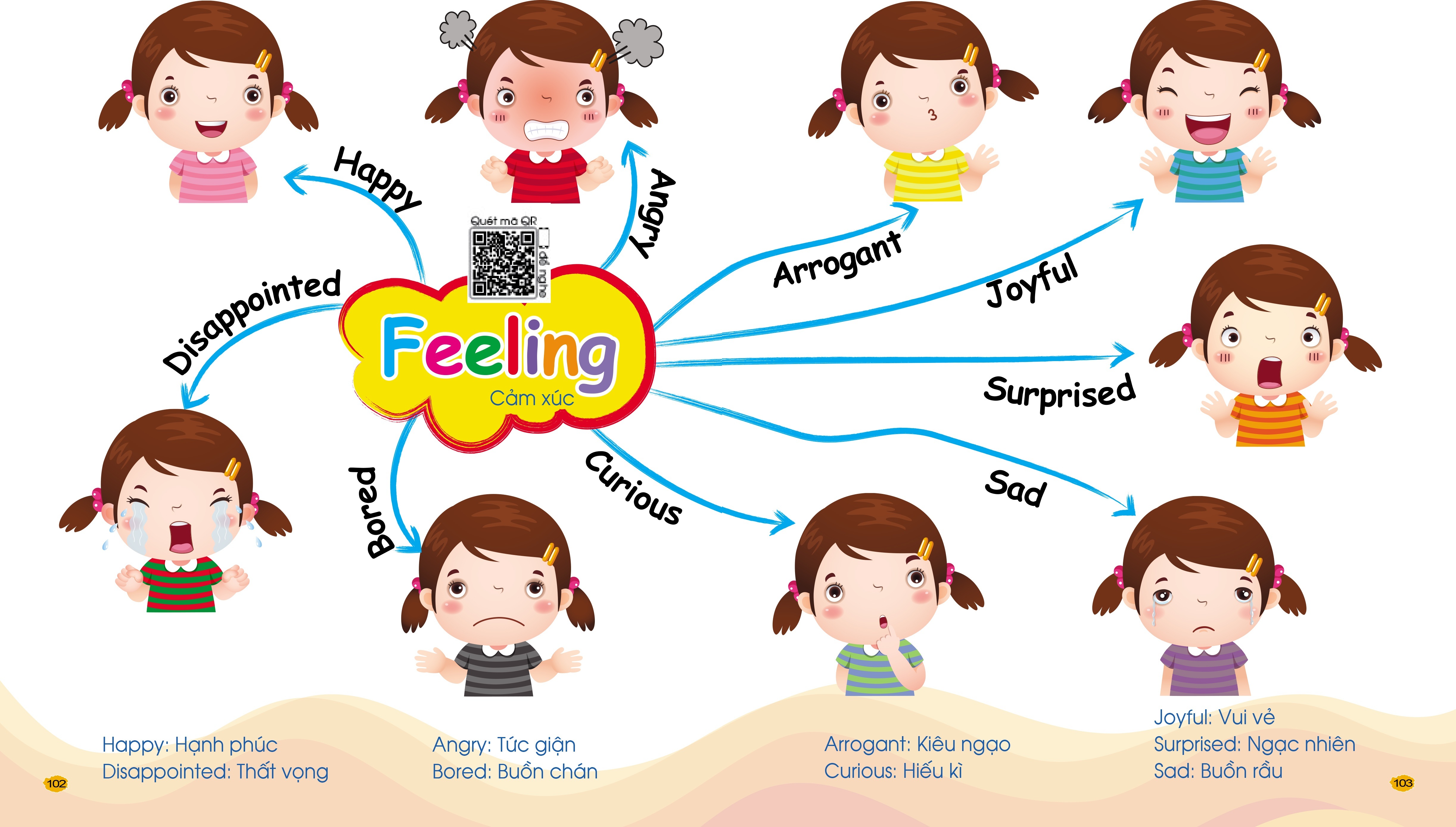 Đặc biệt, cuốn sách có kèm theo File đọc từ vựng tiếng Anh giọng chuẩn bản địa, quét mã QR trên sách theo từng chủ đề, sẽ giúp trẻ luyện kĩ năng nghe tốt hơn và phát âm theo chuẩn hơn.