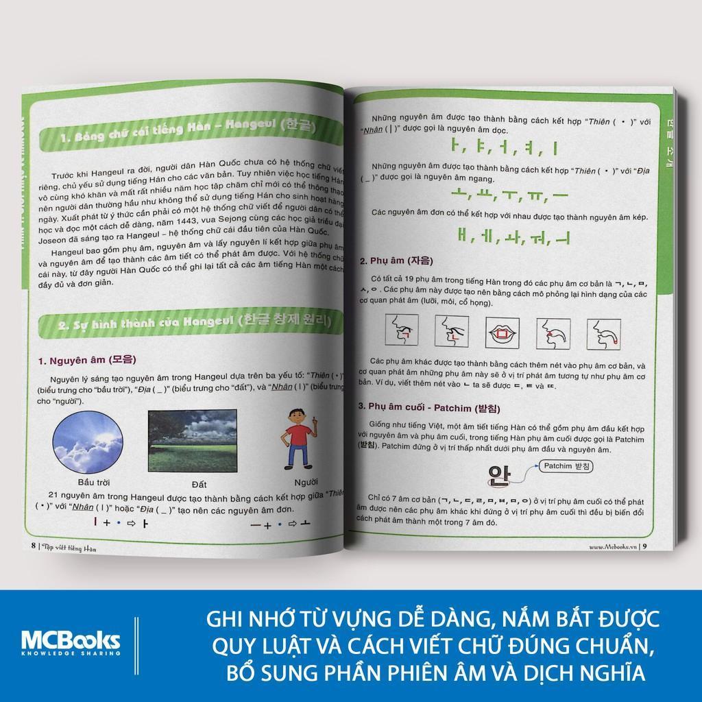 Sách Tập viết tiếng Hàn dành cho người mới bắt đầu là cuốn sách giải thích một cách dễ hiểu về nguồn gốc và các quy tắc trong chữ viết tiếng Hàn. Sau đó hướng dẫn cách đọc & viết các âm, các từ trong tiếng Hàn. Sách còn cung cấp hệ thống bài tập giúp bạn củng cố kiến thức đã học.