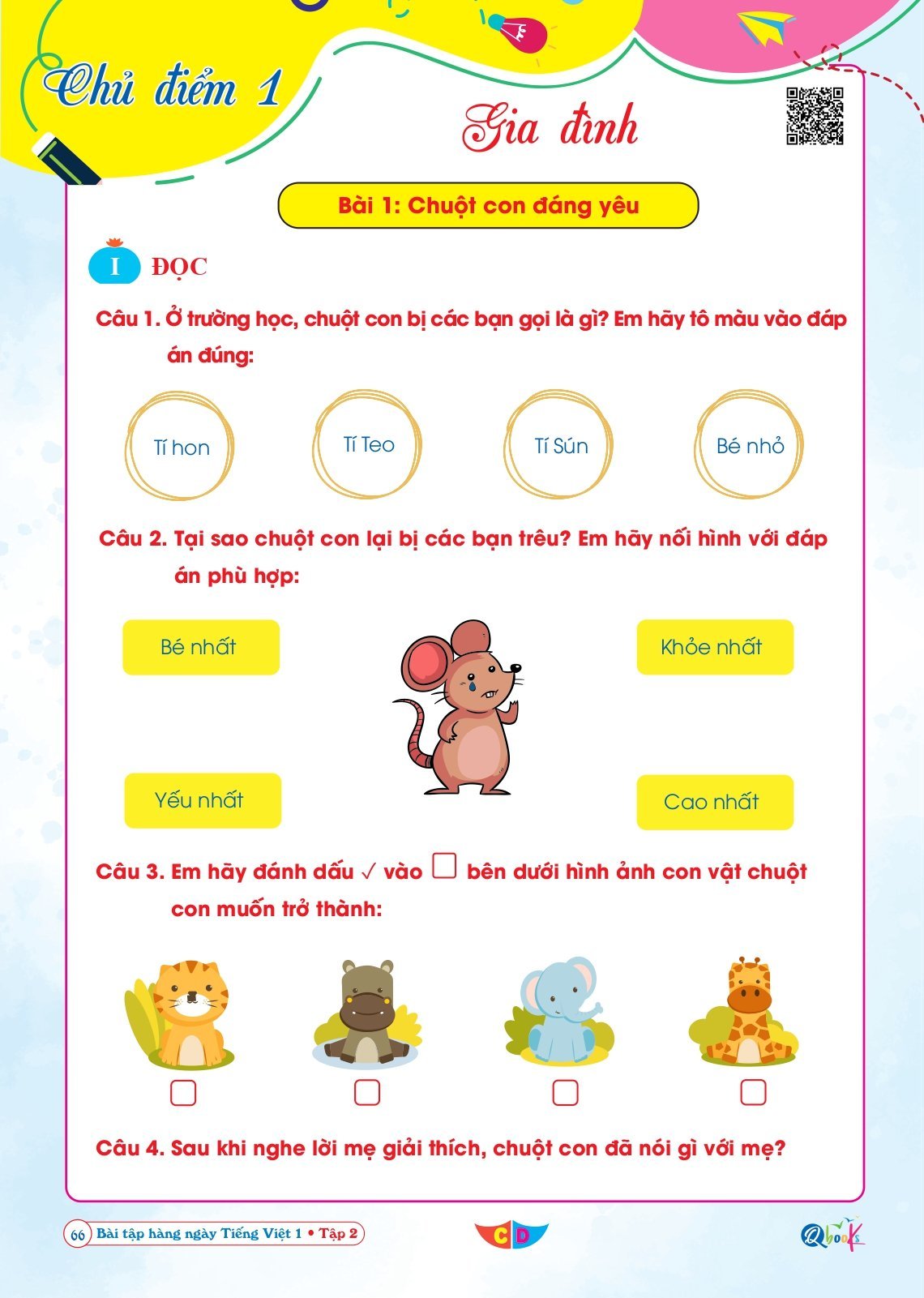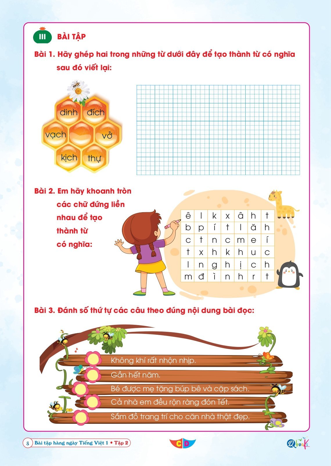 Cuốn sách giúp học sinh thực hành và làm các bài tập hằng ngày sau mỗi ngày học ở trường.