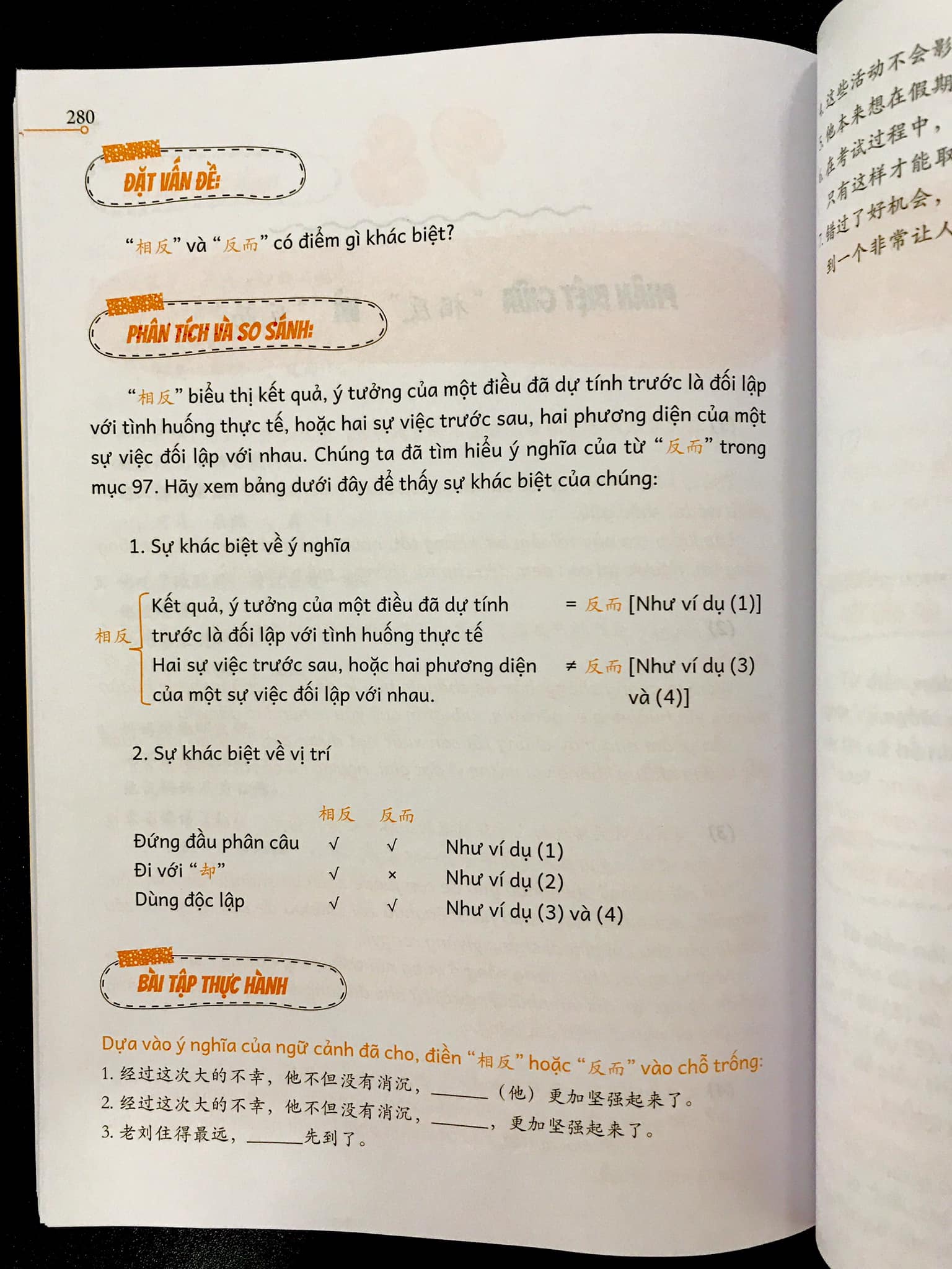 Cuốn sách duy nhất trên thị trường có giải thích và so sánh các điểm ngữ pháp thường bị nhầm lẫn trong Tiếng Trung 1. Cuốn sách này tập hợp, lựa chọn ra 201 điểm ngữ pháp mà người nước ngoài thường cảm thấy khó khăn trong quá trình học tiếng Hán, sau đó chúng tôi đi vào trọng tâm phân tích và so sánh. Đối với những điểm ngữ pháp khó, chúng tôi tiến hành phân chia thành các mục nhỏ để quá trình phân tích trở nên dễ dàng hơn. 2. Tất cả các mục trong cuốn sách này đều được phân loại và sắp xếp dựa trên “Đề cương ngữ pháp trong giảng dạy tiếng Hán cho người nước ngoài” (Chủ biên Vương Hoàn, Nhà xuất bản Học viện ngôn ngữ Bắc Kinh, năm 1995), song cũng chưa đạt tới mức độ hệ thống toàn diện. Đối với các mục so sánh hai đơn vị ngữ pháp (A & B) có từ loại khác nhau, chúng tôi sắp xếp chúng vào phần từ loại của đơn vị trước (A). Để thuận tiện cho người sử dụng trong quá trình tra cứu, chúng tôi đã đánh dấu phân loại tại phần mục lục. 3. Cấu trúc của mỗi mục được trình bày như sau: Các ví dụ điển hình, Đặt vấn đề, Phân tích và so sánh, Bài tập thực hành, Đáp án bài tập thực hành (phần cuối sách).