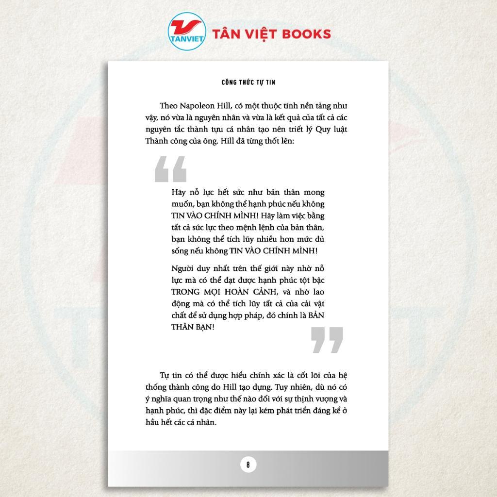 Niềm tin vào bản thân và khả năng của bạn quyết định việc bạn thất bại hay thành công. Công thức tự tin giúp bạn tăng cường sự tự tin của mình thông qua việc áp dụng các chiến lược của Hill để kiểm soát suy nghĩ của bạn. Bằng cách thực hiện những nguyên tắc này, bạn sẽ không chỉ có thể suy nghĩ và hành động tốt hơn - thu hút nheieuf cơ hội hơn, tạo được ảnh hưởng và củng cố các mối quan hệ - mà còn có thể truyền đạt phẩm chất quan trọng này cho những người khác.