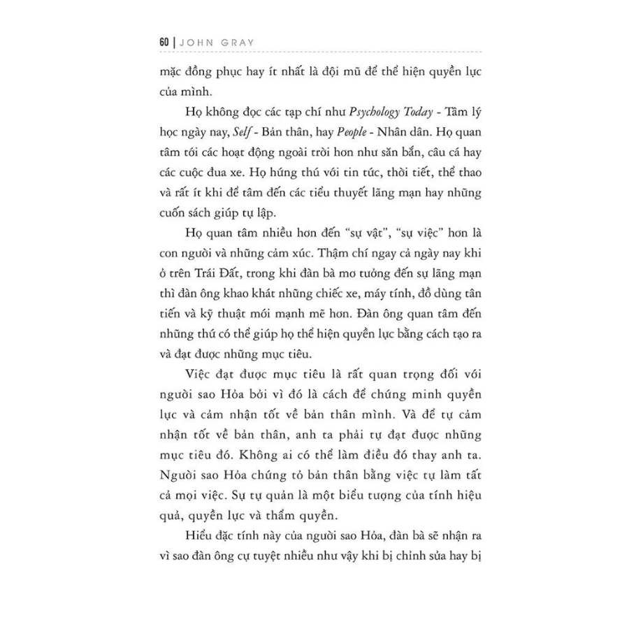 “Đàn ông sao Hỏa đàn bà sao Kim” là một trong 12 tác phẩm được bán chạy nhất của tác giả John Gray. Ngay từ khi ra mắt, tác phẩm nhanh chóng thu về đuoẹc hơn 15 triệu bản và trở thành cuốn sách " phí hư cấu được xếp hạng cao nhất những năm 1990. Cuốn sách này ra đời nhằm hướng đến những độc giả trong mối quan hệ tình cảm hay đã kết hôn đang đương đầu với những gánh nặng của trái tim, những bất đồng quan điểm của hai giới trong hôn nhân chỉ vì không hiểu nhau , từ đó giúp bạn đọc có thể hiểu chính bản thân mình và người khác giới, các bạn sẽ có một cái nhìn sâu sắc hơn, thấu hiểu hơn về nửa kia của mình.