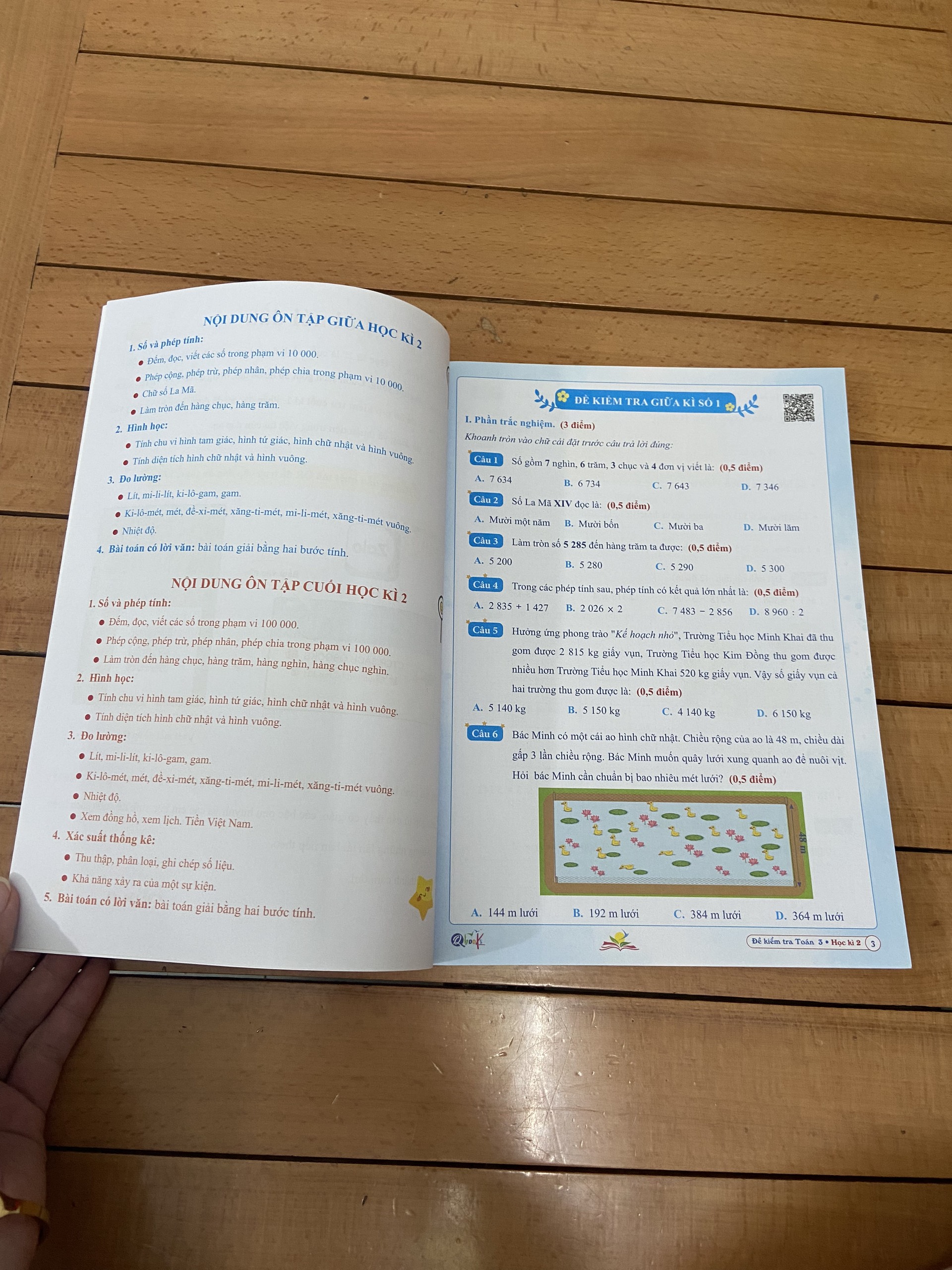 Mua tại TiktokSách - Đề kiểm tra tiếng việt lớp 3 học kì 2 Giới thiệu sách Đề kiểm tra toán 3 - Học kì 2 Là cuốn sách được biên soạn theo chương trình SGK Kết nối tri thức với cuộc sống. Cuốn sách gồm 20 đề ôn tập, Trong đó có 5 đề ôn tập Kiểm tra giữa kỳ 2 và 15 Đề ôn tập kiểm tra cuối kỳ 2.
