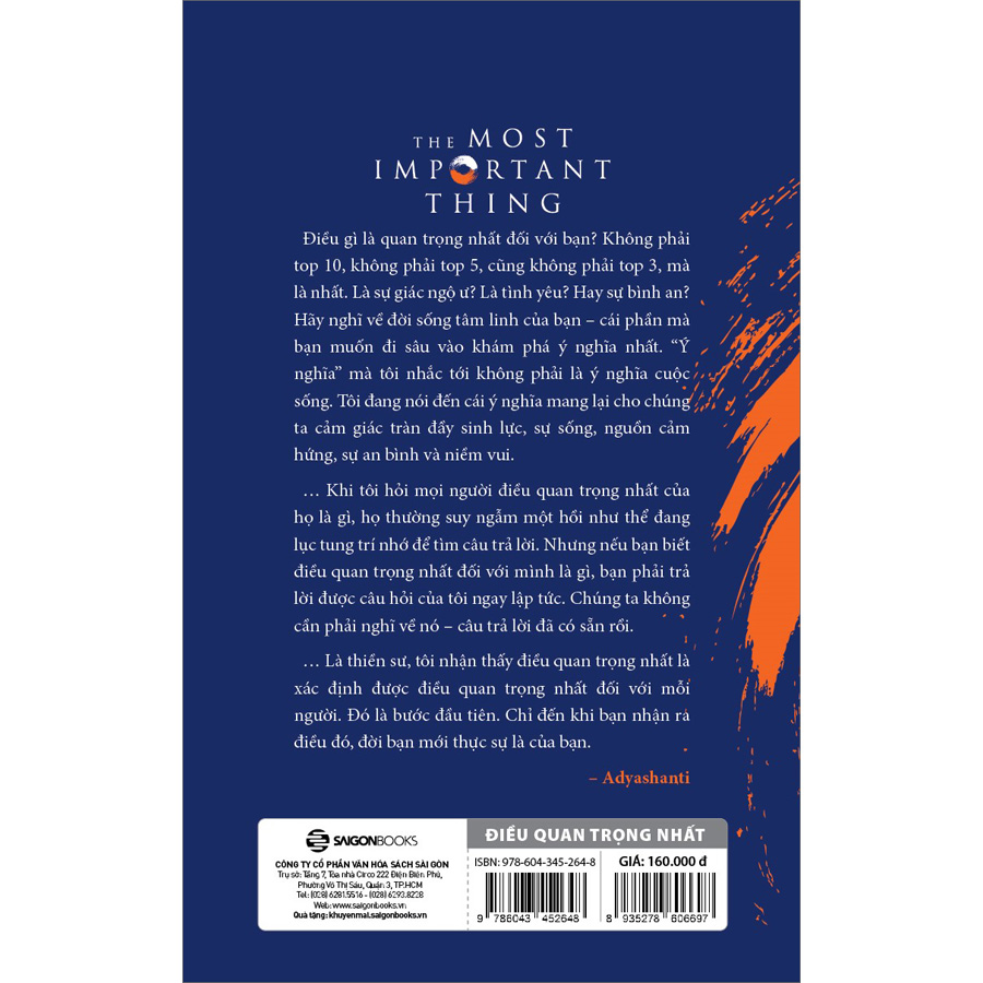 Cuốn sách The Most Important Thing: Discovering Truth at The Heart of Life này sẽ không chỉ giúp bạn chiêu đãi và nâng cao tinh thần của mình, mà còn cung cấp cho bạn phương tiện để đi sâu vào trải nghiệm trực tiếp về sự hiện hữu, từ đó bạn sẽ nếm được vị của phúc lành nhờ biết ưu tiên cho điều quan trọng nhất.
