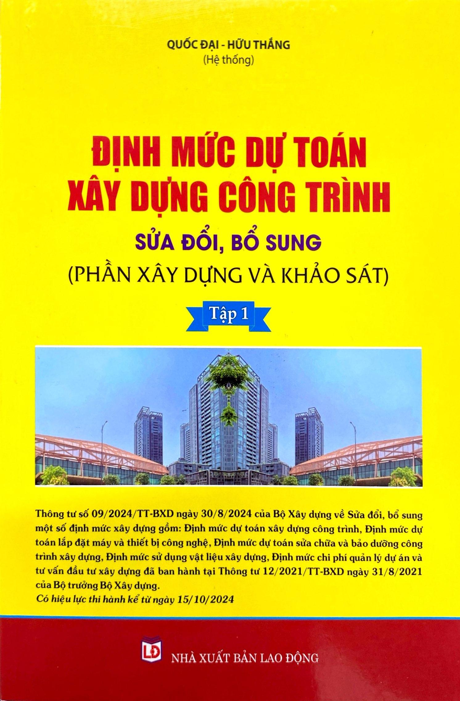 Nhằm giúp bạn đọc nói chung, những người làm công tác xây dựng, các cơ quan, tổ chức, cá nhân có liên quan tham khảo, sử dụng vào việc lập và dự toán, khảo sát, xây dựng công trình, quản lý chi phí dự án và tư vấn đầu tư xây dựng... Pháp luật Sài Gòn Hà Nội liên kết với Nhà xuất bản Lao Động cho xuất bản các tập sách: