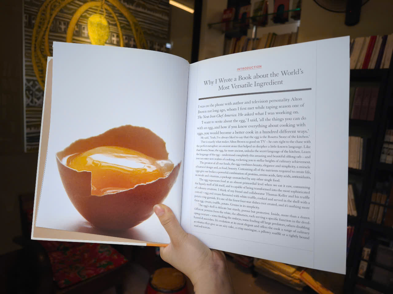 Đối với nhà tiên phong ẩm thực Michael Ruhlman, câu hỏi không phải là con gà hay quả trứng có trước, mà là làm sao có thể hoàn thành bất cứ điều gì trong bếp mà không có phép màu của quả trứng thông thường. Ông bắt đầu với món trứng luộc và trứng đánh hoàn hảo và xây dựng lên thành bánh brioche và bánh meringue kiểu Ý. Trong quá trình đó, độc giả học cách tự làm sốt mayonnaise, mì ống, bánh trứng sữa, bánh quiche, bánh ngọt và các chế phẩm khác dựa chủ yếu vào sức mạnh tiềm ẩn của quả trứng. Một khuôn khổ độc đáo cho cuốn sách được cung cấp trong sơ đồ trứng của Ruhlman, bắt đầu với toàn bộ quả trứng ở trên cùng và phân nhánh ra để mô tả nhiều công dụng và chế biến của nó - luộc, nấu bằng áp suất, luộc, chiên, nấu chín, tách, nhào thành bột nhão và bột nhào, v.v. Một sơ đồ minh họa có thể tháo rời được bao gồm trong sách. Gần 100 công thức được nhóm theo kỹ thuật và có phạm vi từ đơn giản (Salad trứng với ngải giấm và hẹ) đến phức tạp (kẹo nougat). Hàng chục bức ảnh hướng dẫn từng bước nấu ăn tại nhà trong hành trình ẩm thực đáng chú ý này.