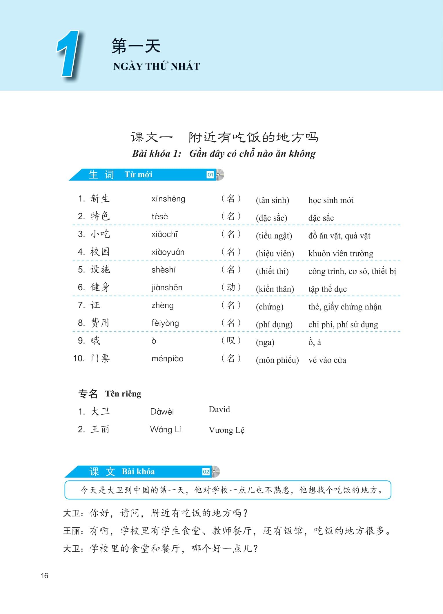Giáo Trình Hán Ngữ 1 - Tập 1 - Quyển Thượng Các bài học trong “Giáo trình Hán ngữ 1” Tập 1 được thiết kế gồm 5 phần: 1. Bài đọc, 2. Từ mới, 3.