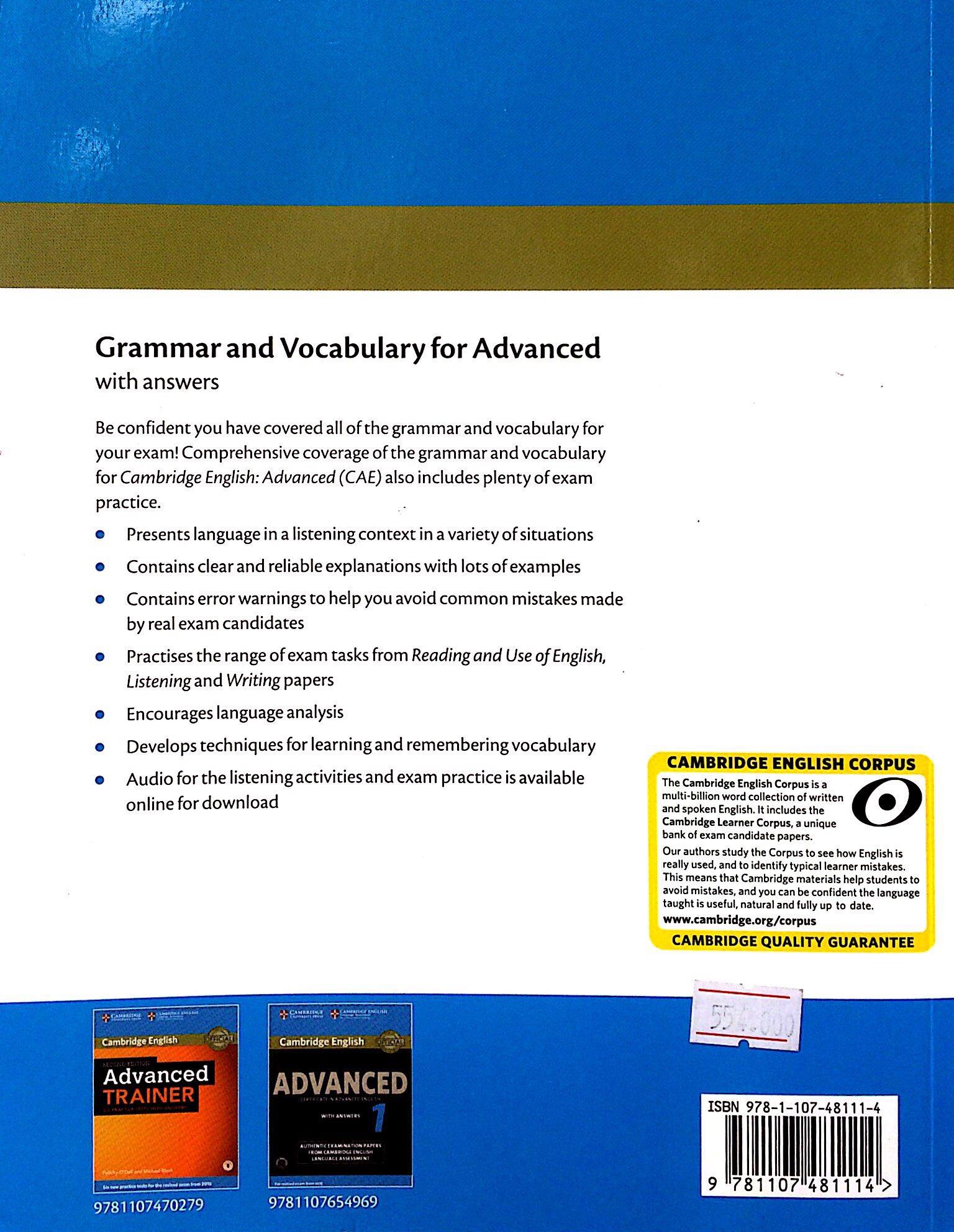 Mua tại TiktokGrammar and Vocabulary reference and practice for the revised Cambridge English: Advanced (CAE) from 2015 Cambridge Grammar for CAE and Proficiency provides complete coverage of the grammar needed for both CAE and Proficiency with plenty