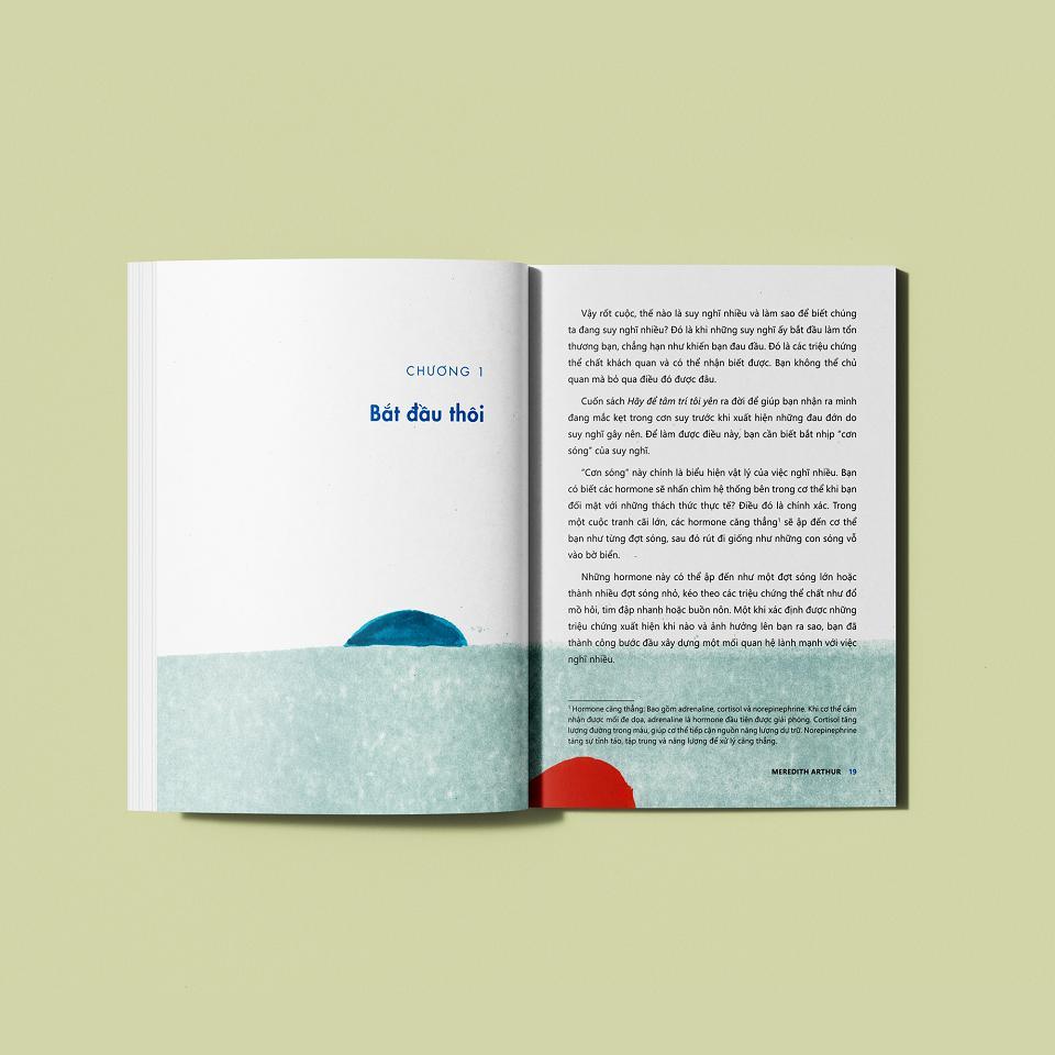 Cung cấp các kỹ thuật xoa dịu để hiểu được sự lo lắng và vượt qua những cạm bẫy của việc suy nghĩ quá mức. Hướng đến đối tượng độc giả hiện đại đang tìm kiếm sự hỗ trợ. Hình minh họa đẹp mắt tạo cảm giác vui vẻ để đối phó với sự lo lắng và xoa dịu những suy nghĩ căng thẳng, thông qua các bài tập dễ dàng, những thông tin ngắn gọn và hình ảnh minh họa nhẹ nhàng.