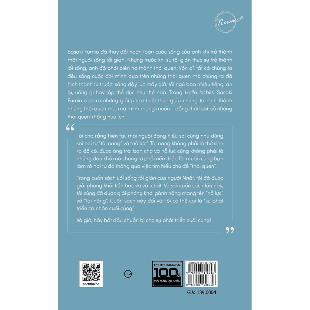 Tôi vẫn luôn cho rằng bản thân là người “không có tài năng”. Bởi dù làm gì thì tôi cũng không thể nghiêm túc duy trì được lâu dài. Và dù là chơi thể thao hay học tập, tôi cũng chưa khi nào đạt được những thành tích đáng kể. Nhưng sau khi tìm hiểu về thói quen, tôi đã thay đổi suy nghĩ. Hiện tại, với tôi, việc có tài năng hay không đã không còn quan trọng. Bởi tài năng không phải là thứ “được ban tặng” mà là thứ “được tạo ra” từ kết quả của việc duy trì các thói quen. Tôi rất thích nhà văn Sakaguchi Kyohei. Trong những cuốn tiểu thuyết của mình, anh ấy sử dụng những từ ngữ hoàn toàn khác với các nhà văn khác. Anh ấy biết chơi guitar, đàn những bản nhạc khiến bao người rung động, và còn biết vẽ những bức tranh độc đáo. Gần đây, anh ấy còn đóng bàn ghế, đan lát đồ dùng. Anh ấy quả thực là một người tài năng. Nhưng khi Sakaguchi Kyohei mới bắt đầu hoạt động, chính bố anh đã nói rằng: “Nếu không có tài năng thì không trở thành nhà văn được đâu”, và ngay cả em trai anh cũng từng nói: “Anh có thành công thì cũng chỉ là mèo mù vớ cá rán mà thôi!” Nhưng Sakaguchi vẫn luôn nói rằng: “Quan trọng không phải là tài năng mà là tính kiên trì.” Dù là những người đang đứng ở vị trí hàng đầu trong các lĩnh vực như thể thao, nghệ thuật, như Ichiro hay Murakami Haruki thì họ cũng không tự nhận mình là thiên tài. Trong khi đó, chúng ta lại luôn bị mê hoặc trước những truyền thuyết về các thiên tài. Ví dụ, trong bộ truyện tranh Dragon Ball, tài năng của các nhân vật luôn được đánh thức khi họ tức giận, hay Slam Dunk với nhân vật chính vốn chỉ biết đánh nhau thì lại được phát hiện khả năng bật nhảy, hay như bộ phim điện ảnh Hollywood The Matrix kể về người được chọn sẽ đột nhiên thức tỉnh năng lực của bản thân. Càng trải nghiệm, bạn sẽ càng nhận ra rằng tài năng thực tế không giống với những câu chuyện hấp dẫn đó. Những người được coi là thiên tài đều phải nỗ lực hết mình. Có một câu danh ngôn như sau: Thiên tài chẳng qua là sức mạnh của quá trình nỗ lực không ngừng. – Elbert Hubbard Như vậy, có lẽ thiên tài chính là người luôn kiên trì, nỗ lực. Từ đây, tôi lại suy nghĩ: Vậy, mỗi chúng ta có tồn tại “khả năng duy trì nỗ lực” không? Tôi cho rằng hiện tại, mọi người đang hiểu sai cũng như dùng sai hai từ “tài năng” và “nỗ lực”. Tài năng không phải là thứ sinh ra đã có, được ông trời ban cho, và nỗ lực cũng không phải là những đau khổ mà chúng ta phải nếm trải. Trong cuốn sách này, tôi muốn cùng bạn làm rõ hai từ đó thông qua việc tìm hiểu chủ đề “thói quen”. Đồng thời, tôi cũng muốn đem tài năng và nỗ lực quay về với những người bình thường nhất. Hai yếu tố tài năng và nỗ lực không phải chỉ có ở một nhóm người mà được hình thành dựa vào bản thân mỗi người chúng ta. Cuốn sách này có thể tóm lược đơn giản như sau: • Tài năng không phải là thứ “được trời ban” mà là thứ “được tạo ra” khi bạn duy trì nỗ lực. • Bạn có thể duy trì sự nỗ lực lâu dài nếu biến nó thành thói quen của mình. • Phương pháp để dưỡng thành các thói quen ấy là những thứ có thể học hỏi được. Trong cuốn Lối sống tối giản của người Nhật, tôi đã được giải phóng khỏi tiền bạc và vật chất. Và với cuốn sách lần này, tôi cũng đã được giải phóng khỏi gánh nặng mang tên “nỗ lực” và “tài năng”. Cuốn sách này đối với tôi có thể coi là “sự phát triển cá nhân cuối cùng”. Và giờ, hãy bắt đầu chuẩn bị cho sự phát triển cuối cùng nào!
