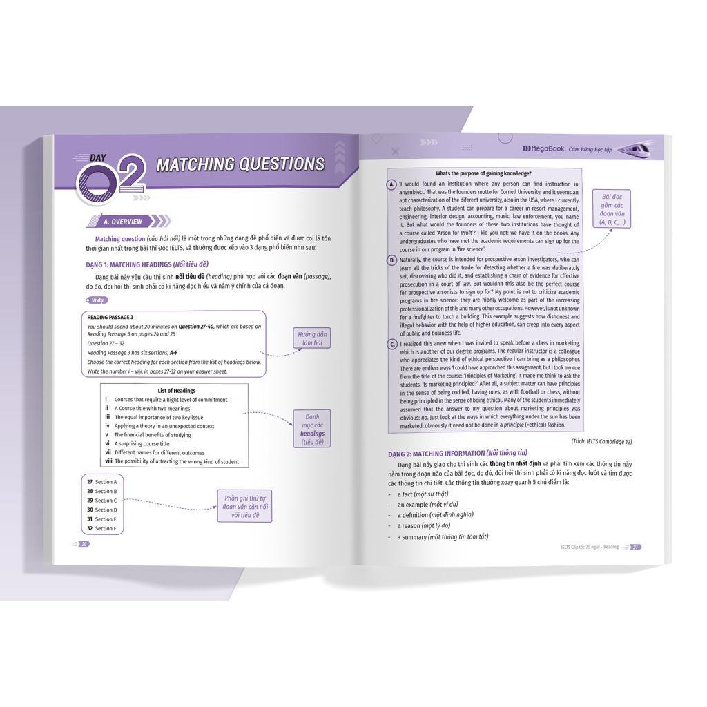 ✨Sách - Ielts Cấp Tốc - 20 Ngày Reading - Bộ Sách Ielts Đầu Tiên Giúp Bạn Giảm 2/3 Thời Gian Ôn Thi - Megabook