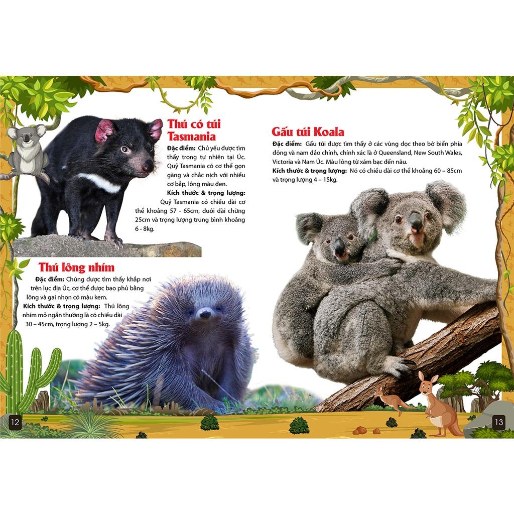 Trong bộ sách, chúng ta sẽ bắt gặp những động vật phân bổ ở cả 5 châu lục, đó là những loài có thể thích nghi với nhiều môi trường sống khác nhau ở cả 5 châu.