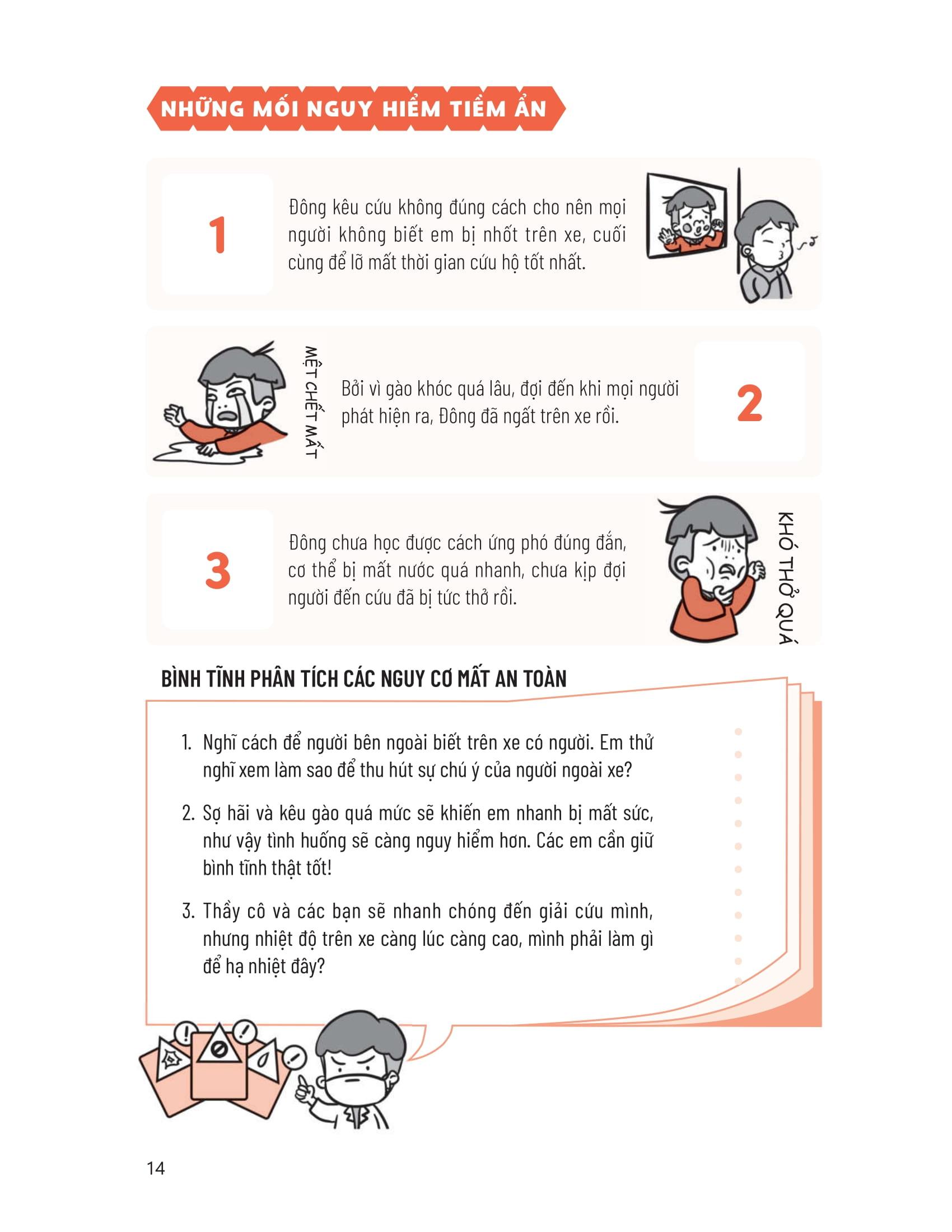 Cuốn sách gồm 5 chương với 35 bối cảnh, về cơ bản sẽ bao quát hết các khía cạnh đời sống học đường của trẻ. Cuốn sách này có thể coi như một bộ học liệu đào tạo có tính hệ thống để trẻ tự học về kiến thức an toàn khi đi học hoặc có thể coi như cẩm nang hướng dẫn giúp trẻ tìm ra câu trả lời cho các vấn đề an toàn tại trường học mà trẻ gặp phải.
