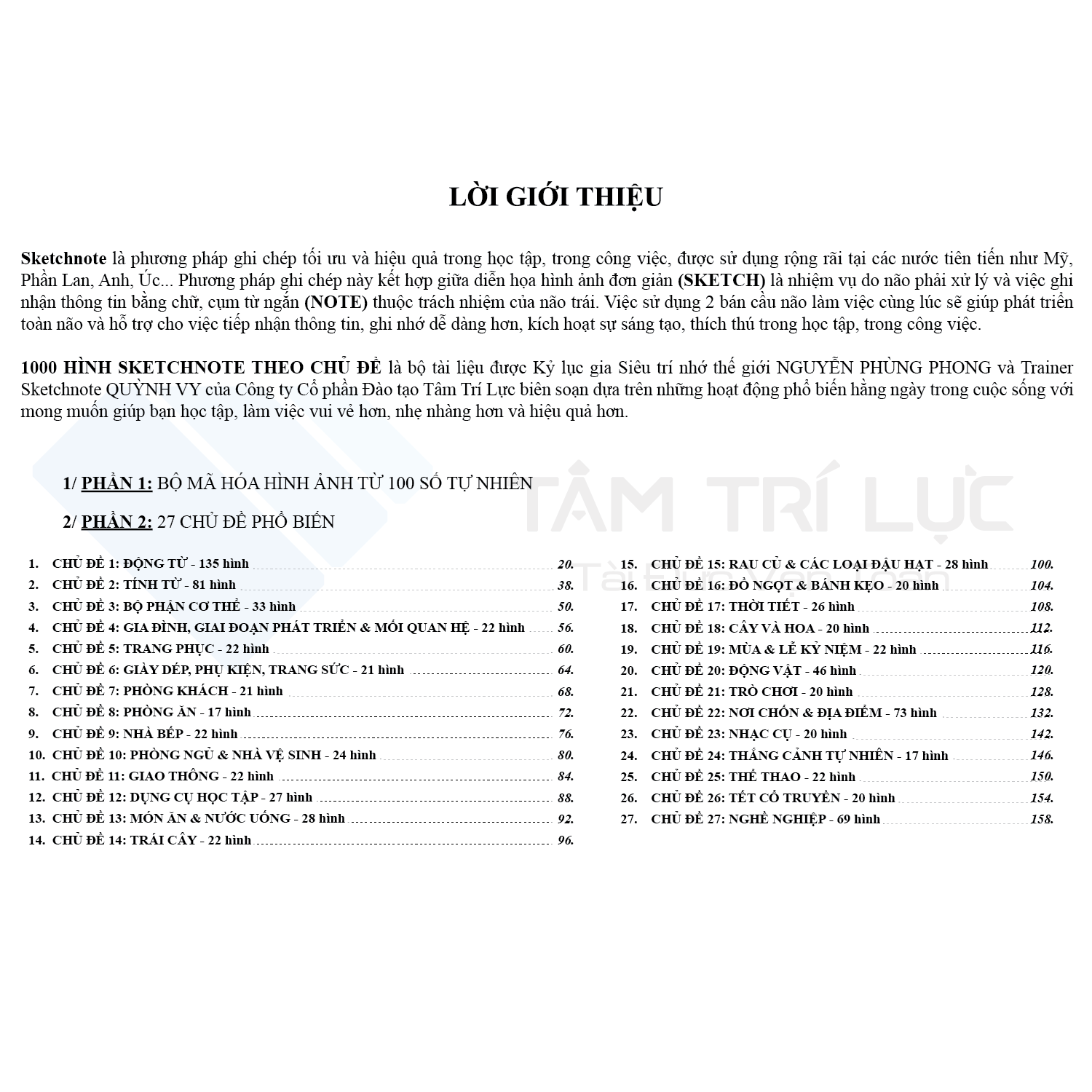 Cuốn sách được biên soạn dựa trên những hình ảnh gần gũi, phổ biến hằng ngày trong học tập, công việc, cuộc sống và giúp mọi người tăng cường khả năng ghi nhớ khi mã hóa các từ ngữ thành hình ảnh.