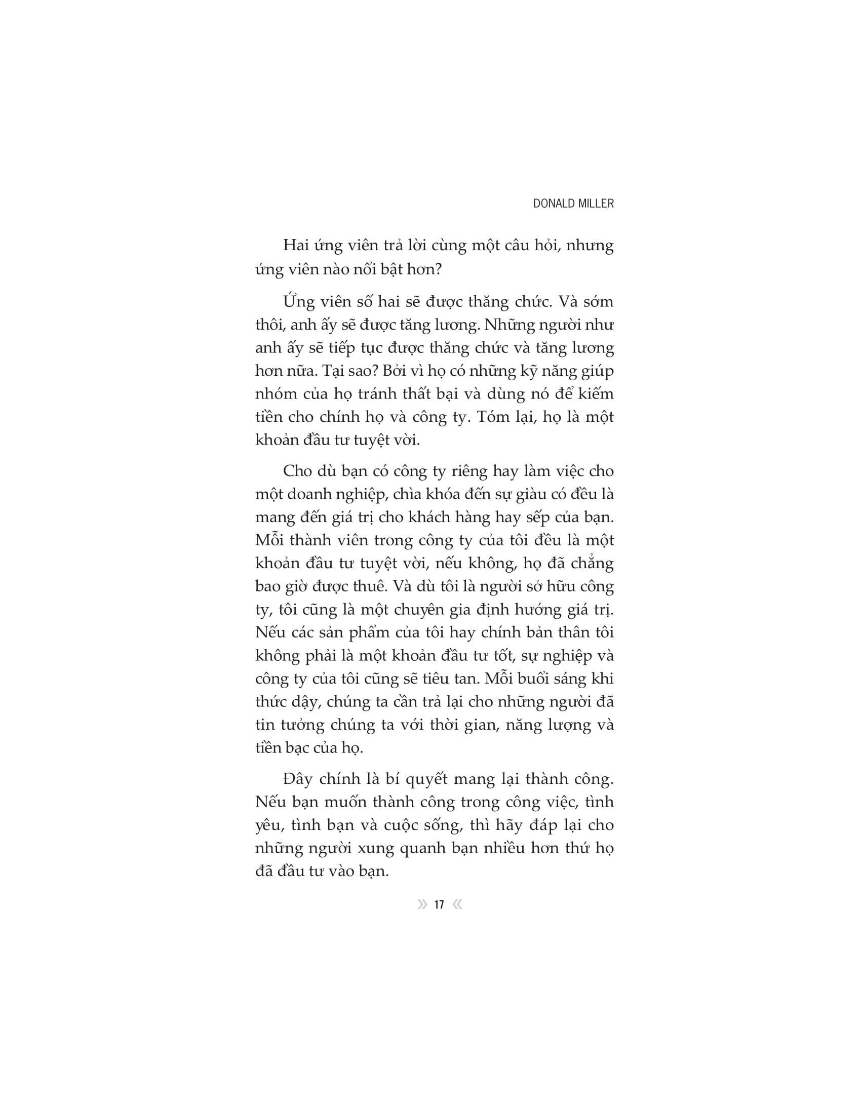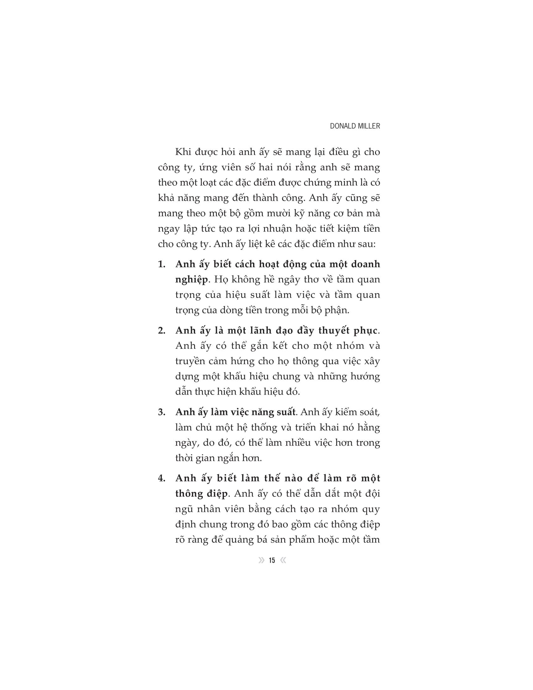 Donald Miller là tác giả và diễn giả người Mỹ. Ông là Giám đốc điều hành của Business Made Simple - một nền tảng trực tuyến giảng dạy về điều hành doanh nghiệp và phát triển bản thân. Ông cũng là người dẫn chương trình Business Made Simple podcast và là tác giả của một số cuốn sách, bao gồm cả những cuốn sách bán chạy nhất như Building a StoryBrand (Xây dựng câu chuyện thương hiệu).