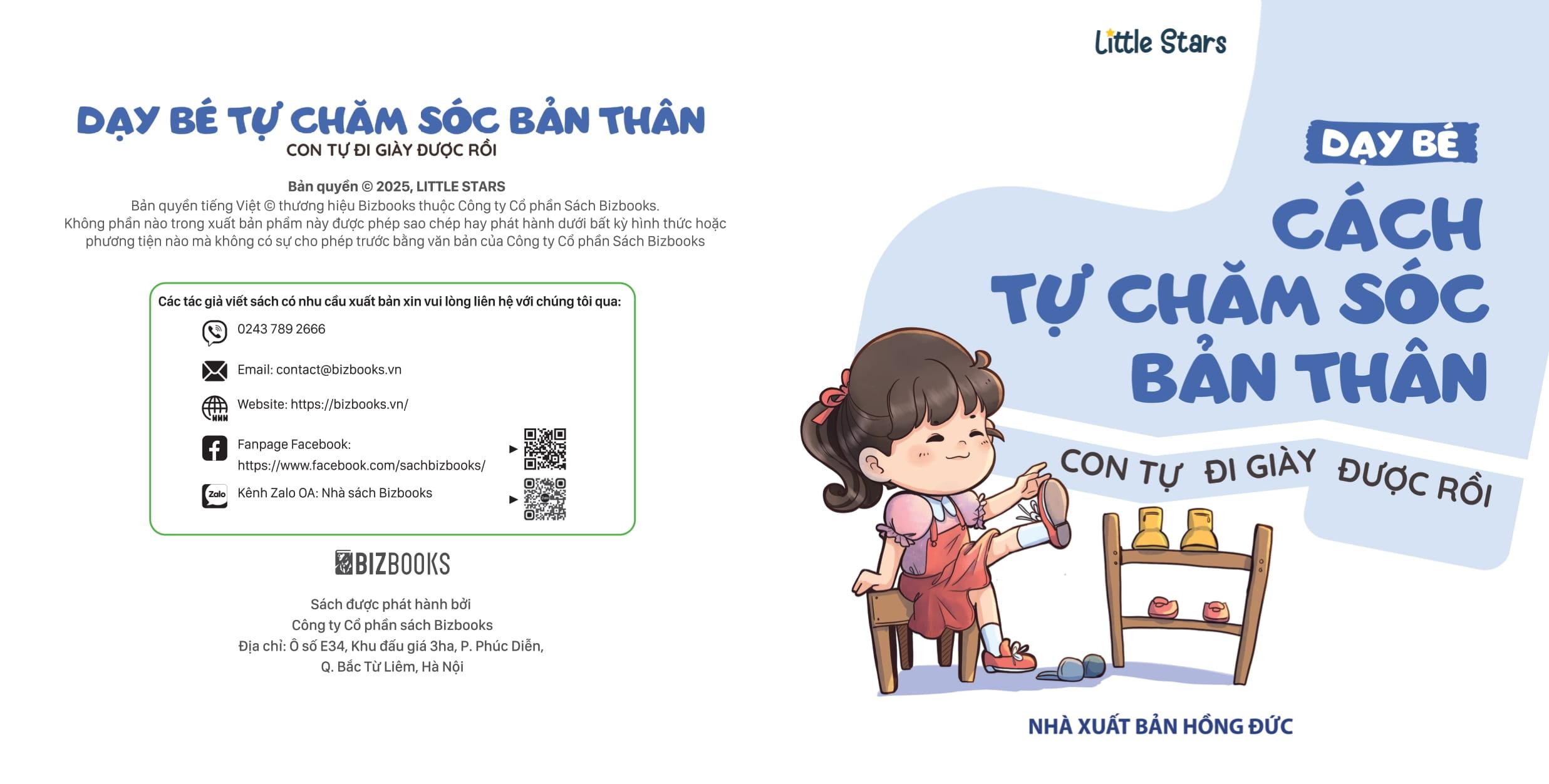 Kỹ Năng Sống Dành Cho Trẻ Mầm Non - Dạy Bé Cách Tự Chăm Sóc Bản Thân - Con Tự Đi Giày Được Rồi Dạy bé cách tự chăm sóc bản thân - Con tự đi giày được rồi Tự lập không phải là phẩm chất đợi đến khi trẻ lớn mới hình thành, mà chính là hạt mầm có thể được gieo trồng từ sớm. Những việc tưởng chừng nhỏ bé như rửa tay, đánh răng, tự đi giày hay dọn đồ chơi lại chính là những bước khởi đầu quan trọng, giúp trẻ từng bước học cách chăm sóc bản thân, hình thành thói quen sống ngăn nắp, sạch sẽ và chủ động trong cuộc sống hằng ngày. Cuốn sách thứ hai trong bộ Growbooks là một “vườn thơ kỹ năng sống” đầy màu sắc, nơi trẻ được học cách tự chăm sóc bản thân thông qua những bài thơ ngắn gọn, dễ nhớ, giàu nhịp điệu. Mỗi bài thơ là một tình huống quen thuộc trong đời sống hằng ngày được kể lại bằng ngôn từ gần gũi, vui tươi và sinh động. Cha mẹ có thể đọc thơ cùng con trước bữa ăn, trước giờ đi ngủ hay khi con làm vệ sinh cá nhân, giúp việc học kỹ năng sống trở nên tự nhiên, vui vẻ và hiệu quả hơn bao giờ hết. Cuốn sách này giúp trẻ: