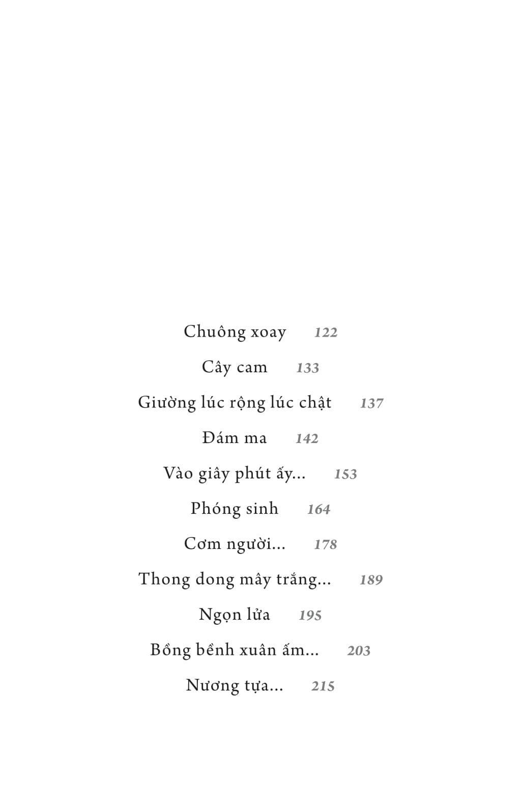 Tập truyện gồm các truyện ngắn: Giày hoa, Những khuôn mặt tượng, Kẻ dịch chuyển, Bụi đất, Gùi xuân lên đỉnh mây trời, Gió từ đỉnh núi, Tại sao im lặng?, Bên lề ký ức, Thả quỷ,...