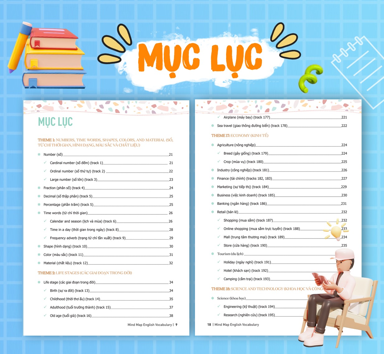 Nhớ sâu thuộc lâu với những từ vựng quen thuộc theo từng chủ đề sống quanh ta.Với những lợi thế đó, cuốn sách Mindmap English Vocabulary giúp bạn: