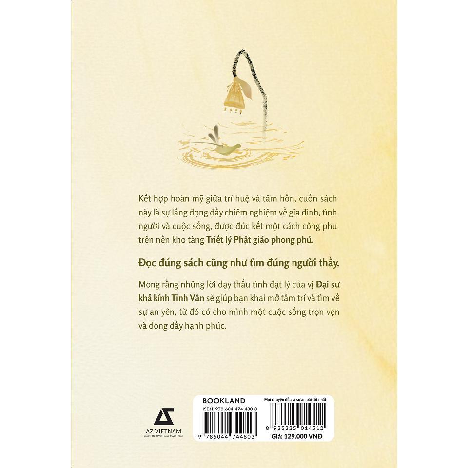“Mọi chuyện đều là sự an bài tốt nhất” là cuốn sách tập hợp những quan điểm, lời khuyên về cách sống, quy tắc đối nhân xử thế, được chắt lọc một cách công phu trên nền kho tàng triết lý Phật giáo phong phú. Cuốn sách đưa ra những bài học về làm thế nào để giữ gìn sự hòa thuận trong gia đình; cách làm tròn bổn phận và trách nhiệm với cha mẹ, con cái và xa hơn là với toàn xã hội. Các chủ đề trong cuốn sách được trình bày một cách khúc chiết với mở đầu là những câu truyện nhỏ mang hàm ý sâu xa, giúp người đọc tự cảm nhận và có thể rút ra bài học cho riêng mình.