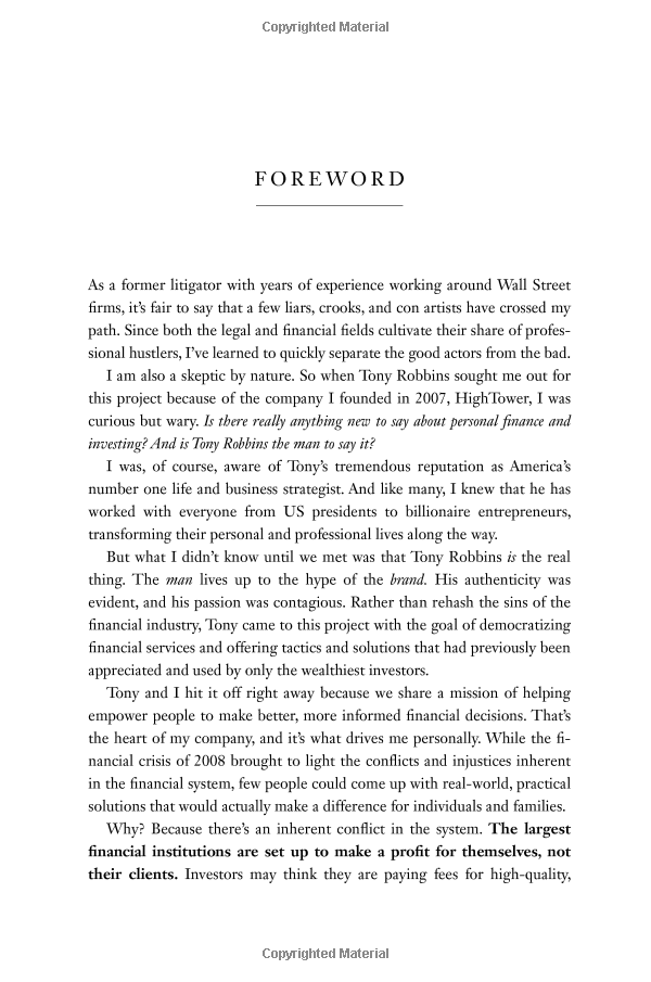 "Tony Robbins needs no introduction. He is committed to helping make life better for every investor. Every investor will find this book extremely interesting and illuminating" - Carl Icahn, billionaire and investor. "Tony Robbins is a