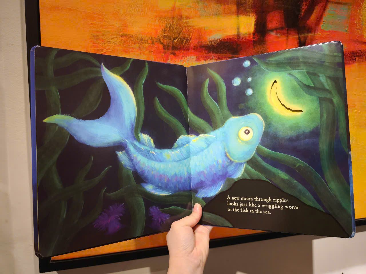 Mặt trăng cũng bí ẩn đối với động vật cũng như đối với trẻ nhỏ. Một con cá nhìn trăng non qua làn nước gợn sóng nghĩ rằng đó là một con sâu đang quằn quại. Đối với loài khỉ, trăng trông giống như một quả chuối thơm ngon. Đối với lũ chuột, nửa vầng trăng trông giống như pho mát...Trong cuốn sách tranh này, với những đường cắt xuyên suốt, mặt trăng mang nhiều hình dạng, ngày càng lớn hơn cho đến khi trăng tròn chiếu sáng một cậu bé.