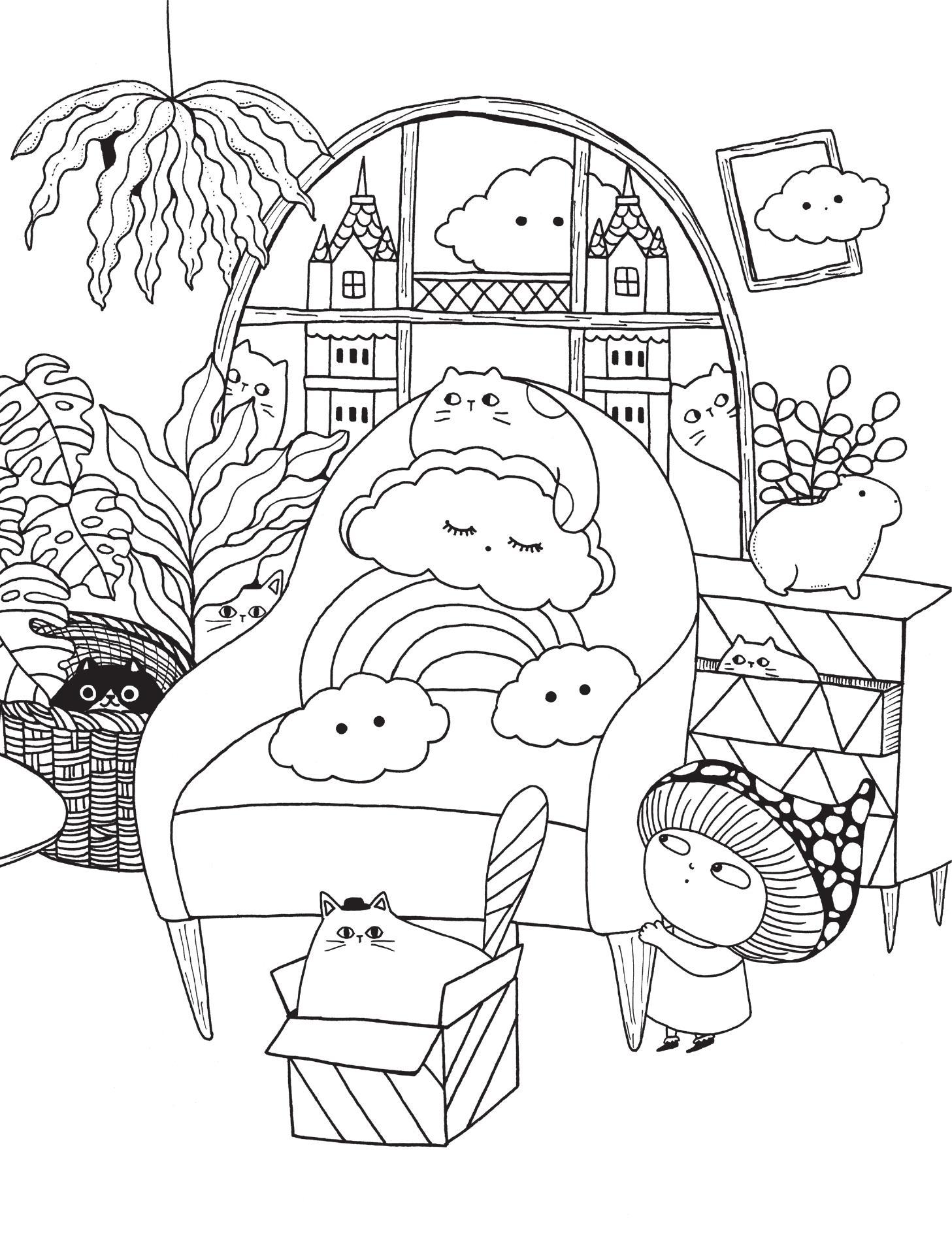 Mỗi trang sách đều được trang trí dày đặc các họa tiết và hoa văn xung quanh nhân vật chính, tạo nên thử thách tô màu chi tiết; đồng thời cũng để một khoảng trống lớn ở giữa để độc giả có thể vẽ thêm các nét, các hình theo trí tưởng tượng riêng.
