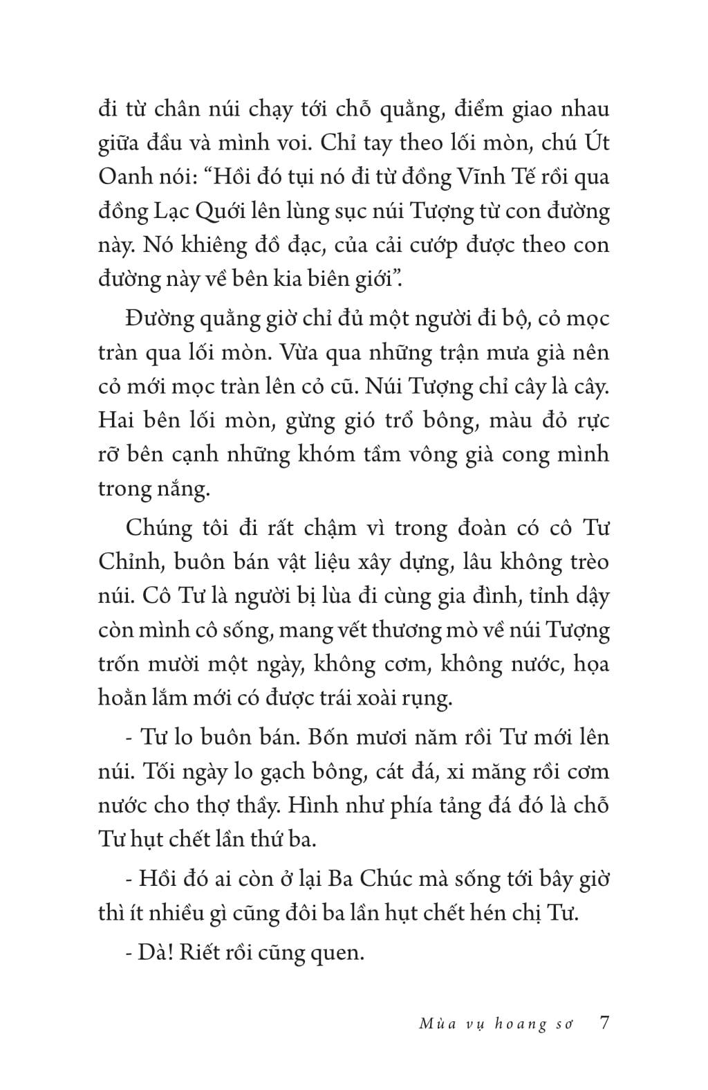 Tập tản văn Mùa hoa trên những lối sông là những cảm xúc da diết của chị về miền Tây Nam bộ. Nơi đó có núi Ba Chúc, có cuộc mưu sinh nhọc nhằn, có tình người chân chất, có con nước uốn lượn - “Tôi thèm những con nước chảy về từ ký ức. Có nhiều lúc ngồi viết, tôi muốn dẫn một dòng nước chạy ngang bàn viết của m.ình. Một dòng nước có g.ấp khúc, có uốn lượn để tôi nghe được tiếng nước đang trăn trở đâu đó bên tai. Tôi thèm đến độ ngủ chiêm bao thấy được những trưa ngồi trên cầu thang nhà lượm những miếng lưới rách để giăng chơi mà gỡ được những con cá linh vảy bạc nhảy soi sói. Giấc mơ xa xỉ nhất trong đời”. Nơi đó cũng rực rỡ những mùa hoa – “Từ bông so đũa trắng ngần cho tới bông s.úng mang sắc hồng ngọt ngào, bông điên điển vàng ươm, bông sầu đâu xanh biếc hoặc bông lục bình tím hồng lãng mạn đều được thấm đẫm vị sông nước, vị quê và hòa quyện với nước mắm cá linh non”.