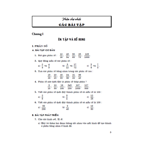 Cuốn sách gồm hai phầm được sắp xếp theo các chương mục trong sách giáo khoa Toán 5.