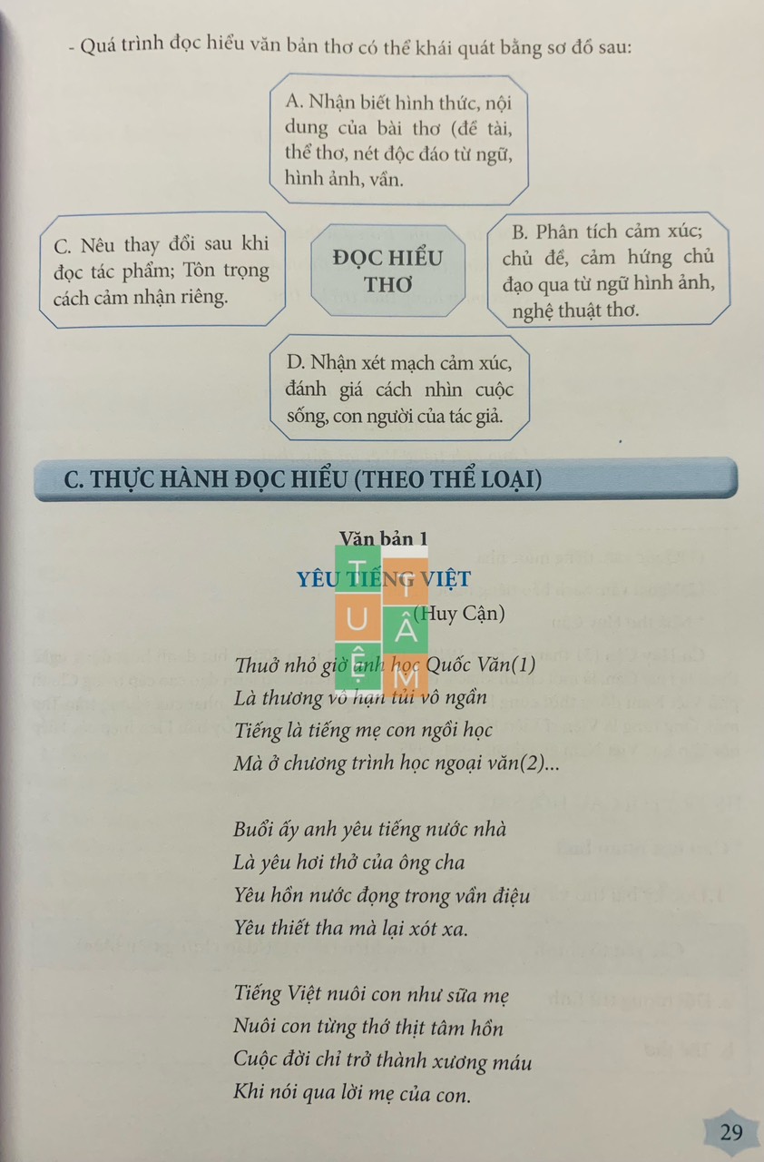C. Các văn bản đọc hiểu mới, hay và đặc sắc của các nhà văn có tên tuổi với hệ thống câu hỏi (3 bậc) giúp học sinh hiểu sâu, trọn vẹn văn bản để hình thành kỹ năng tiếp nhận các văn bản cùng thể loại (không cần học thuộc máy móc).