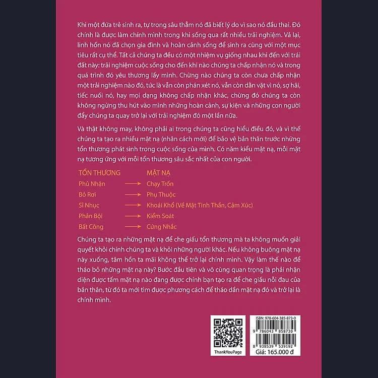 Cuốn sách mô tả những quan sát của tác giả trong hình thể, ngôn ngữ và lời nói của những người đang tái diễn tổn thương (với tổn thương nhục nhã, bị bỏ rơi, bị phủ nhận, bị phản bội, bị đối xử bất công). Nhờ những miêu tả trực giác này của tác giả mà chúng ta có thể phán đoán được một người đang bị ảnh hưởng nhiều bởi chấn thương cảm xúc nào, và việc tự đánh đồng chấn thương cảm xúc đầu đời ấy đã tác động lên cuộc đời họ, cách họ sinh hoạt, nói năng, cách họ đưa ra các lựa chọn của đời mình, và rồi được biểu hiện qua cơ thể ra sao. Qua những tổn thương đó, chúng ta thấy được mối quan hệ giữa mặt nạ vô thức ta mang trong quá trình đối phó với những tổn thương và biểu hiện của chúng trên cơ thể ta. Thông qua cuốn sách, chúng ta dần thấu hiểu tâm thức của con người và có thể rút ra được bài học cho chính mình trên hành trình “thành nhân” (theo cách nói của Carl Rogers) hay “thành toàn tự ngã” (theo cách nói của Carl Jung) của mỗi chúng ta.