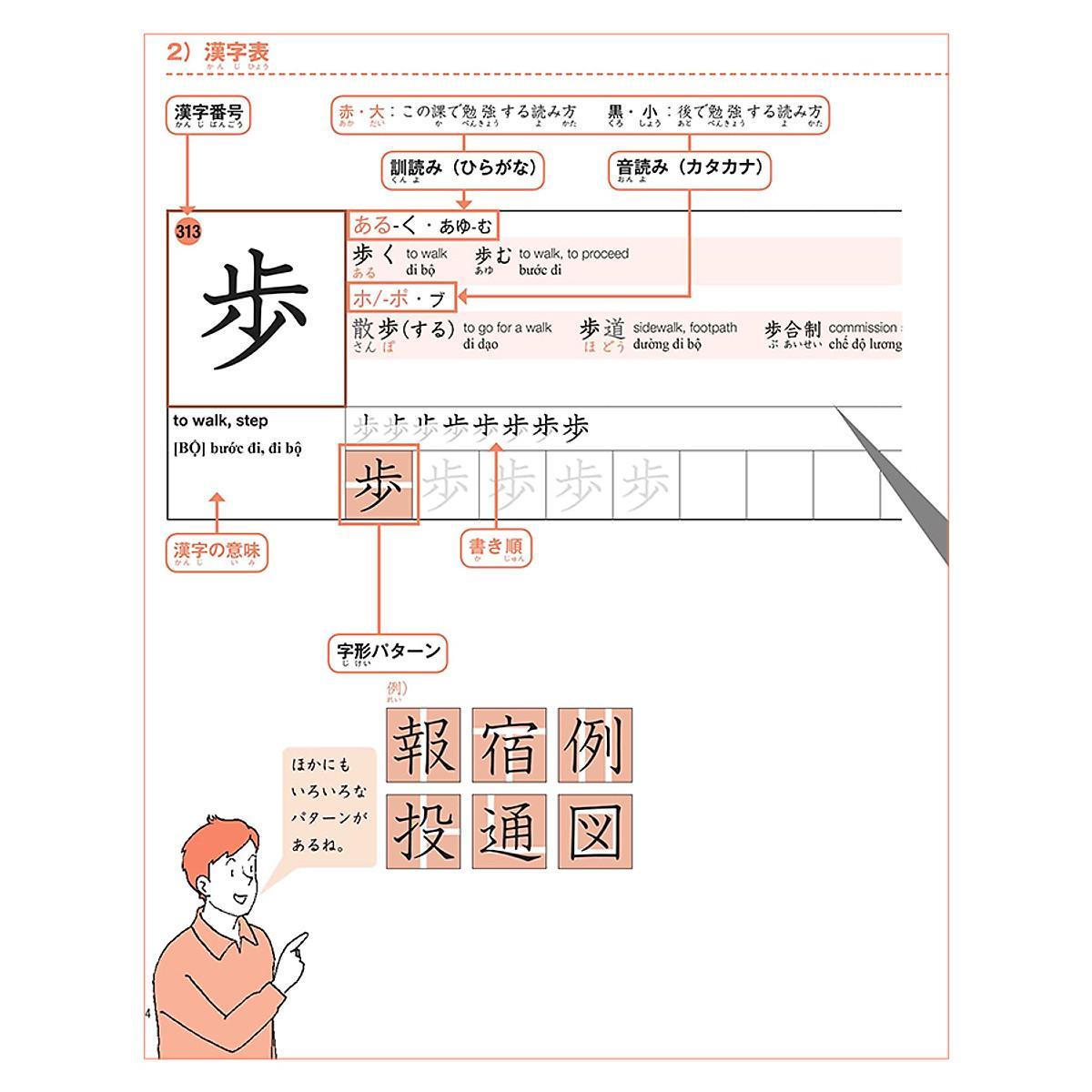 • Mỗi chữ Kanji có một số thứ tự duy nhất và có cả bảng Index chữ Kanji ở phần sau sách. Vì vậy nếu có quên thì học viên vẫn có thể dễ dàng tìm lại để ôn tập.
